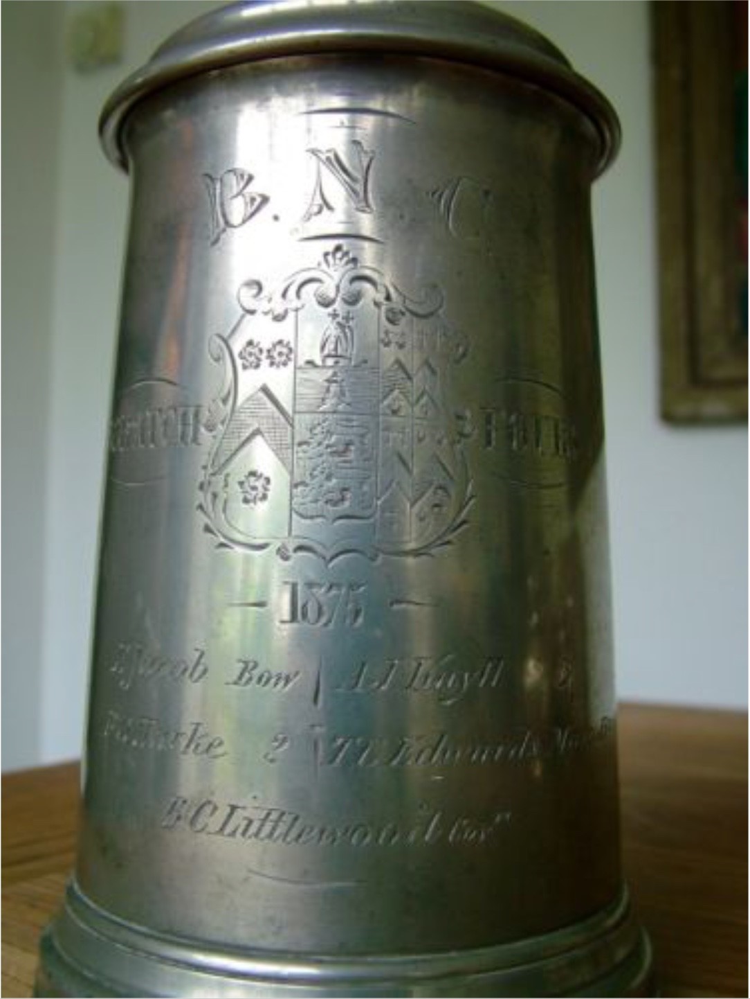 As readers will know, HTBS sometimes highlights items of rowing memorabilia that come up for auction. One recent piece was identified as being of particular historical significance. The item in question was a pewter presentation tankard given in 1875 to the winners of the Brasenose Scratch Fours, and constitutes a relic of a portion of Oxford rowing that is largely unrecorded by rowing historians.