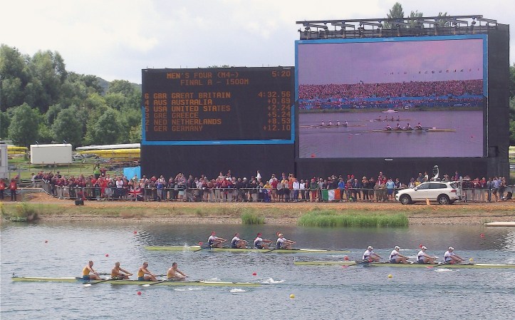 Lisa Taylor, former rower for Cambridge women’s reserves, Blondie, and PhD researcher on ‘Women’s Role in British Competitive Rowing during the Second Half of the Twentieth Century’, spoke on the 1960 Women’s European Rowing Championships held on North London’s ‘Welsh Harp Reservoir’, giving it a broader social and sporting context, particularly relating to the early history of women’s international rowing. Lisa reminded us that Britain did not have an international standard 2000-metre rowing course until the early 1970s and so, before then, had never been able to host a European Rowing Championships, a great blow to the pride of the country that first codified the sport of rowing. However, 1960 was an Olympic year so there was no European Rowing Championship for men, and, until 1985, women’s international rowing was over 1,000 metres. Britain could (just) fit a 1,000-metre course onto the Welsh Harp Reservoir, already an established regatta venue.