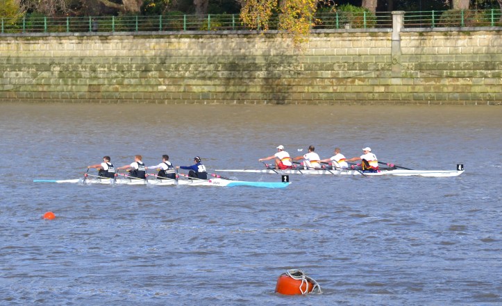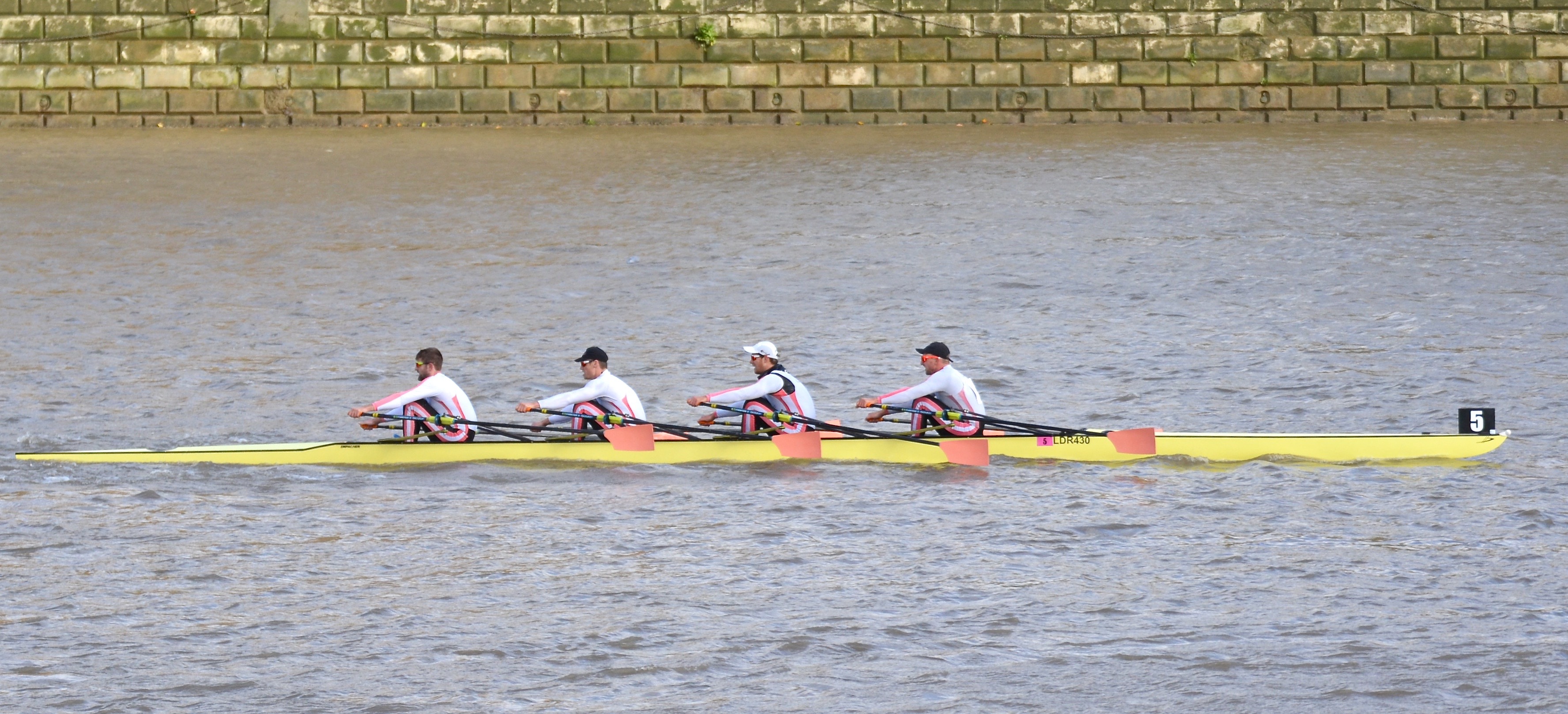A view from London Rowing Club showing the Tideway in an apparently benign mood. Full results are on the HoR4s website, as is a history of the event.