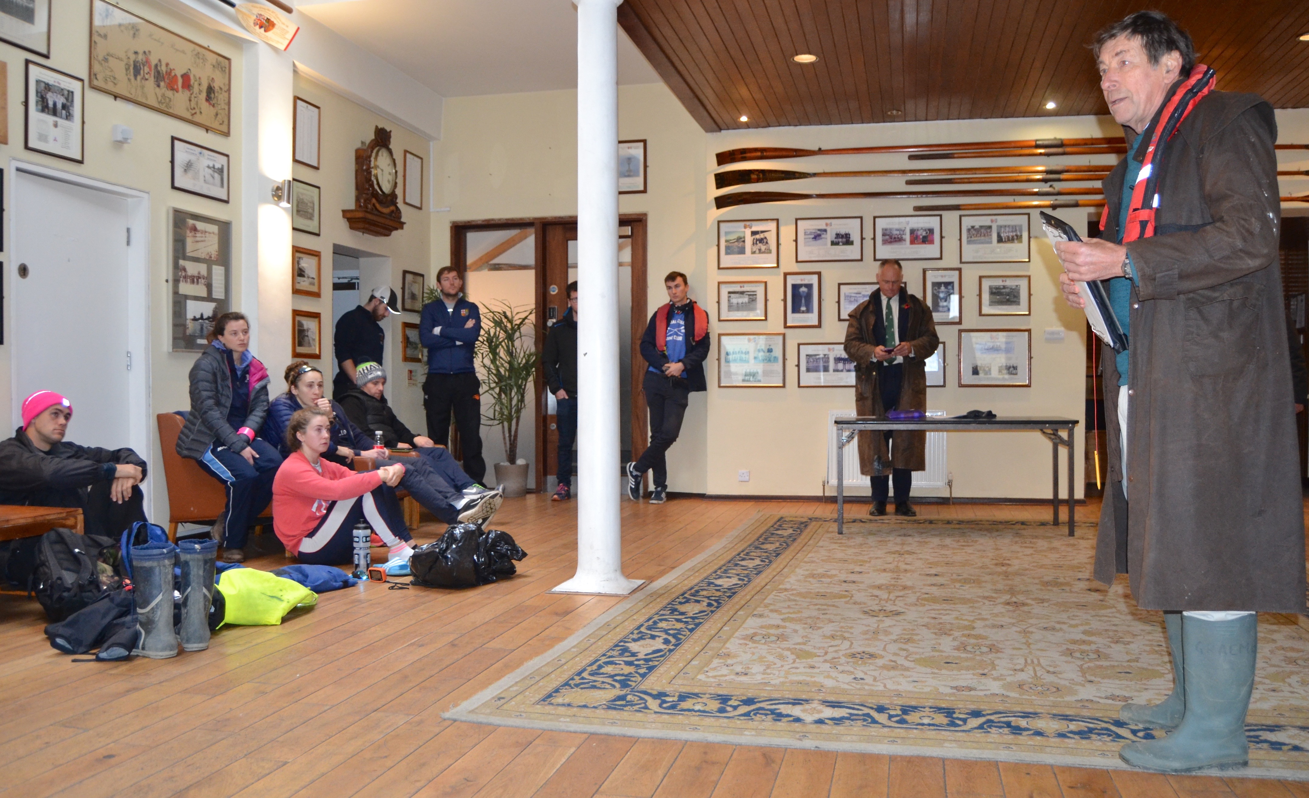 There was a good crowd at Tideway Scullers for bacon sandwiches and the presentations. The Secretary thanked the Tideway community for their support along with the Port of London Authority (PLA), they had all rallied around to make their Championship happen. Our usual umpire’s launch, Peter Laverick’s Verity, was stuck upstream of Staines lock and, at very short notice, the PLA stepped in with the launch Crane, driven by the Assistant Harbour Master, Darren Knight. The Wingfield Family Society continues to support the event, and this year, Edward Wingfield attended from Ireland, along with race regular, Ian Wingfield. Tamesis smiled on the event and the water was good for both races – even if Fortuna did not smile on all the competitors.