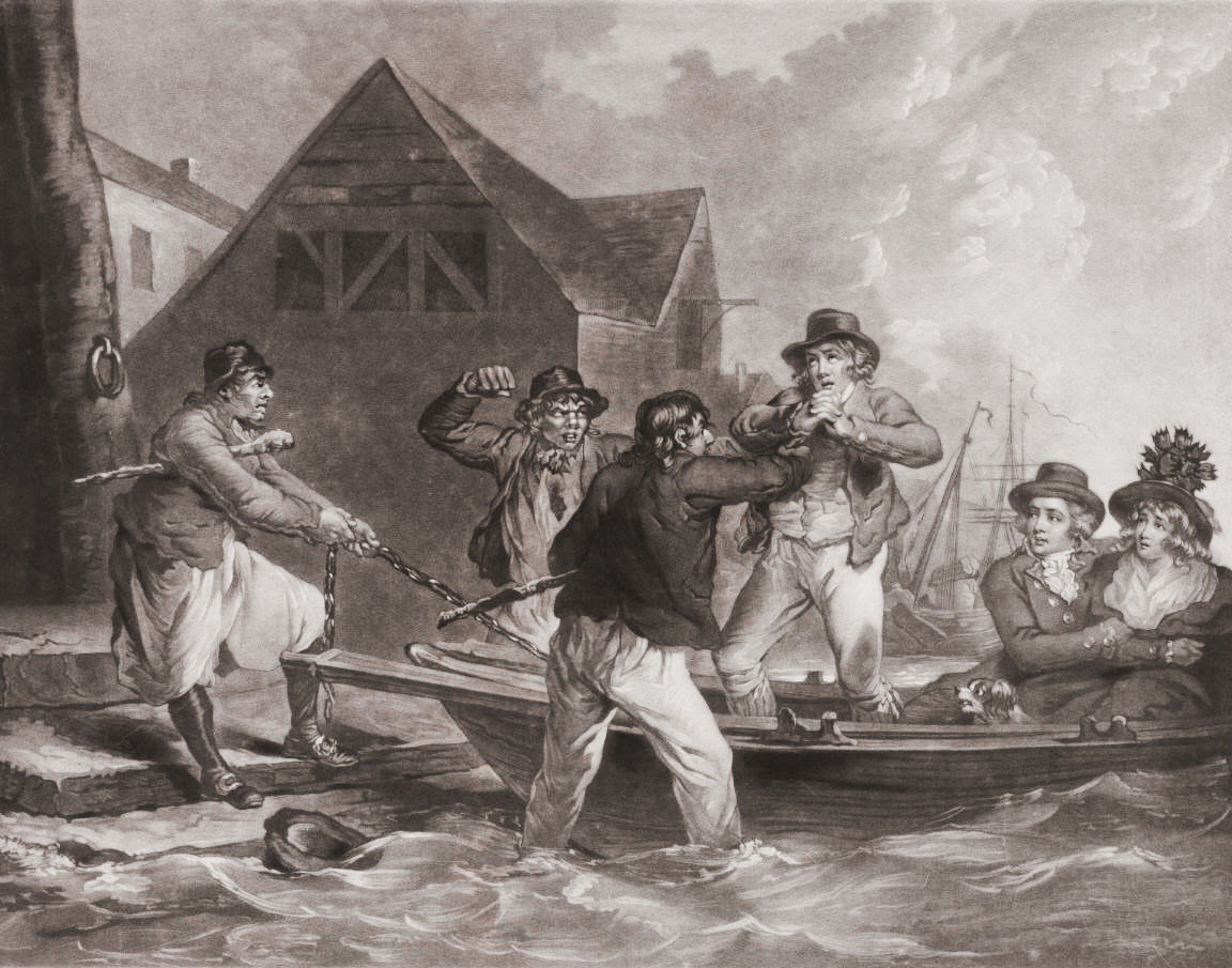 In 1758 the Government were in great want of seamen to man the fleet for the anticipated war with Spain, and…. the Watermen’s Company were commanded to find 3,000 men for the ships, and were granted impress warrants for the purpose. (Soon) half this number had been roped in, but the press-gang were at their wit’s end of how to find the remainder.