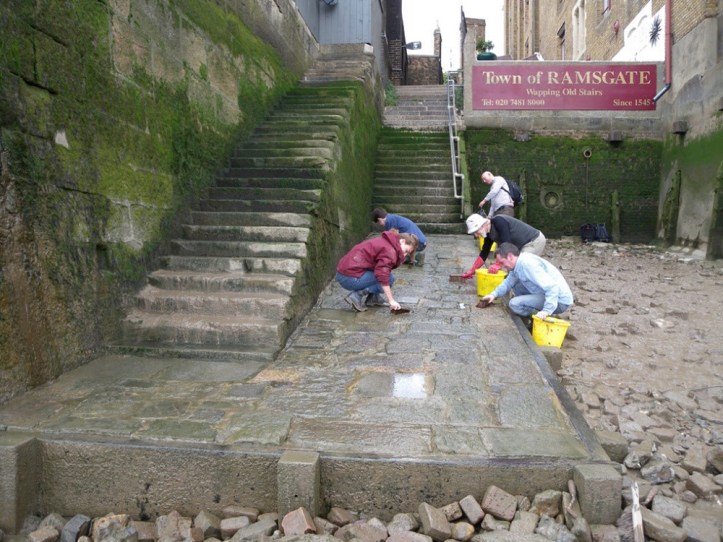 Here is Wapping Old Stairs – today a site for urban archeologists – but watch yourself! It has been a very long time since an apprentice waterman has kept these steps slime-free.