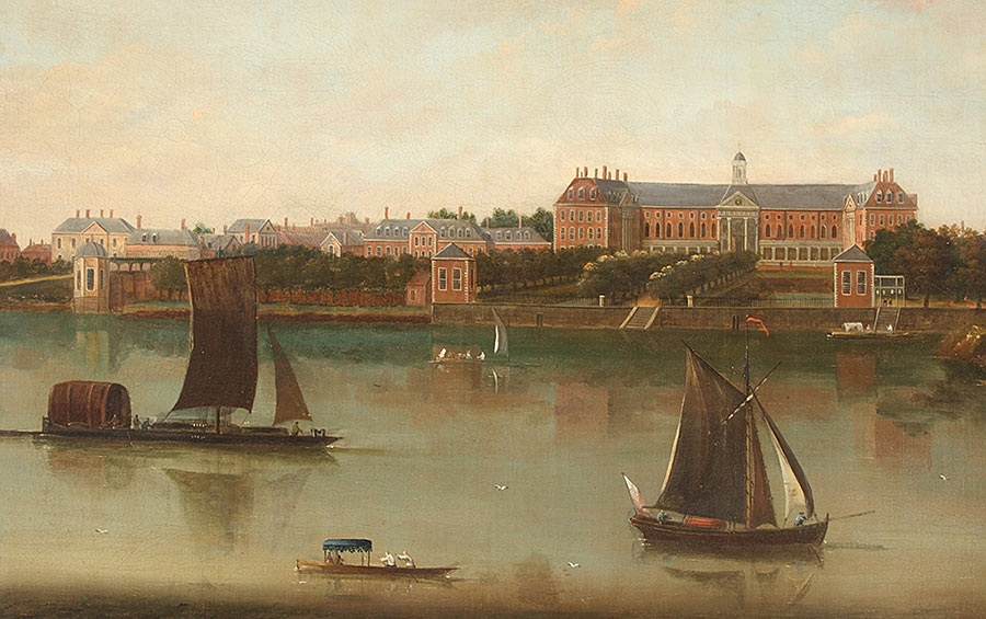 This 18th Century painting of the Royal Hospital, Chelsea shows the view across the river from the front door of the Red House. We definitely have left behind the urban environs of London.