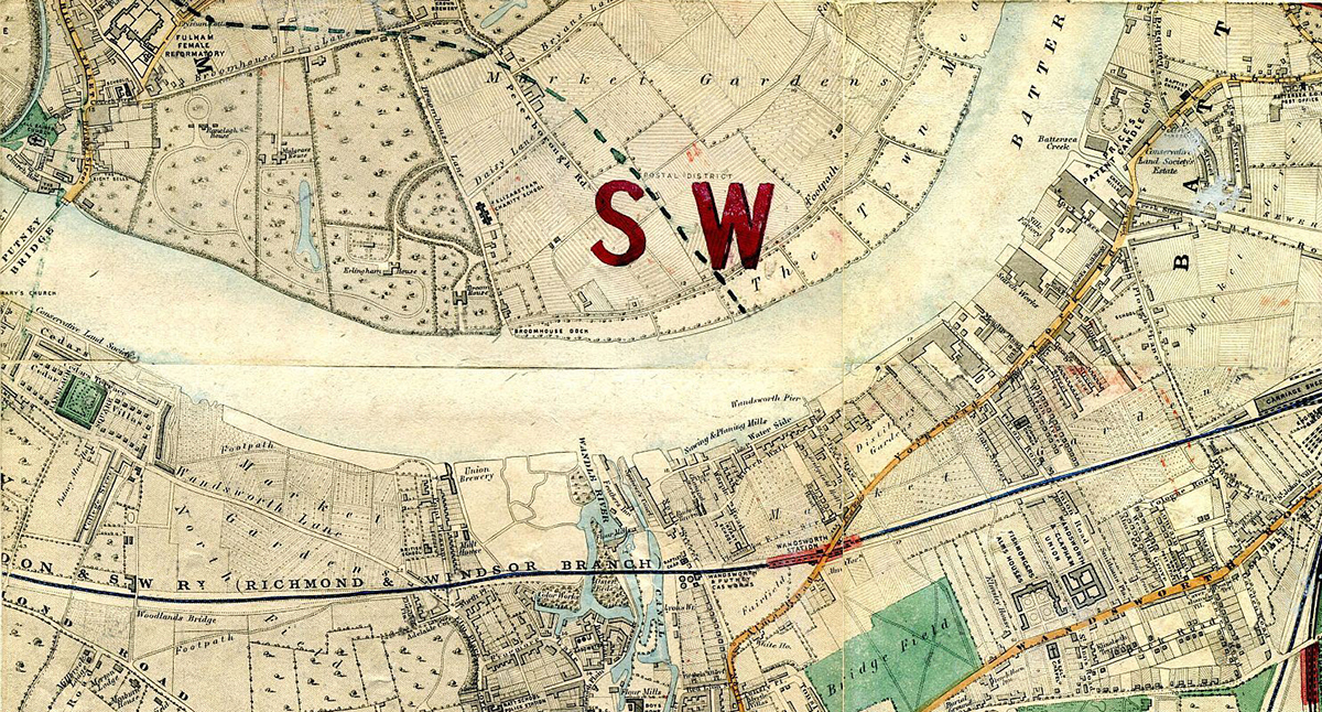 At the upper right is the upstream end of the village of Battersea. Wandsworth is found just a short distance further upstream in the lower centre between Wandsworth Pier and Wandle River.