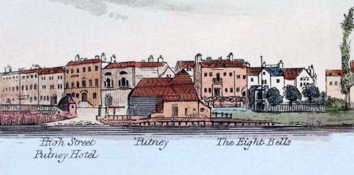 Though we have no reports of regattas further upstream of Wandsworth on 17 August 1829, I would be remiss if our visual journey did not continue one more mile upstream and visit the town of Putney.