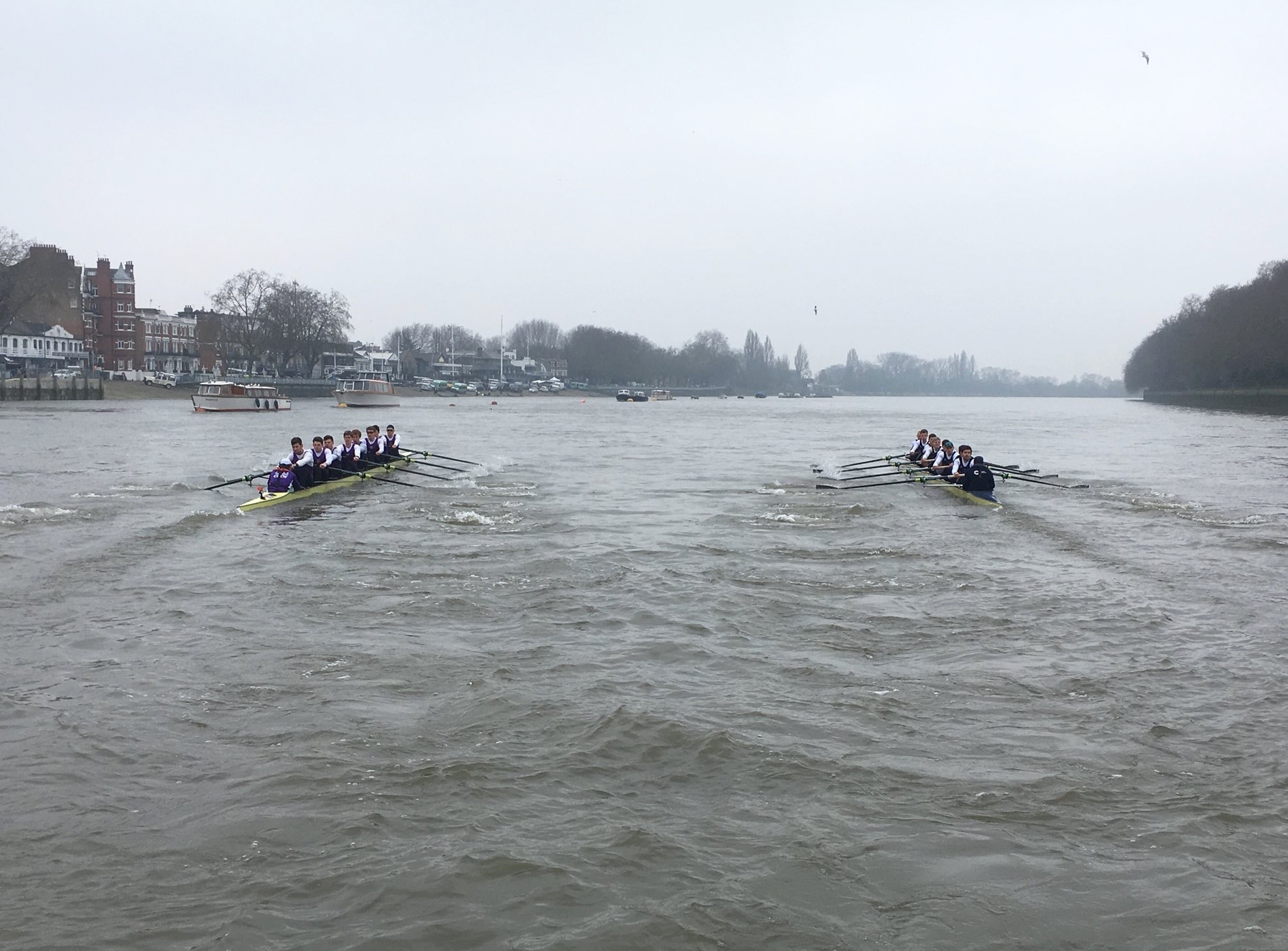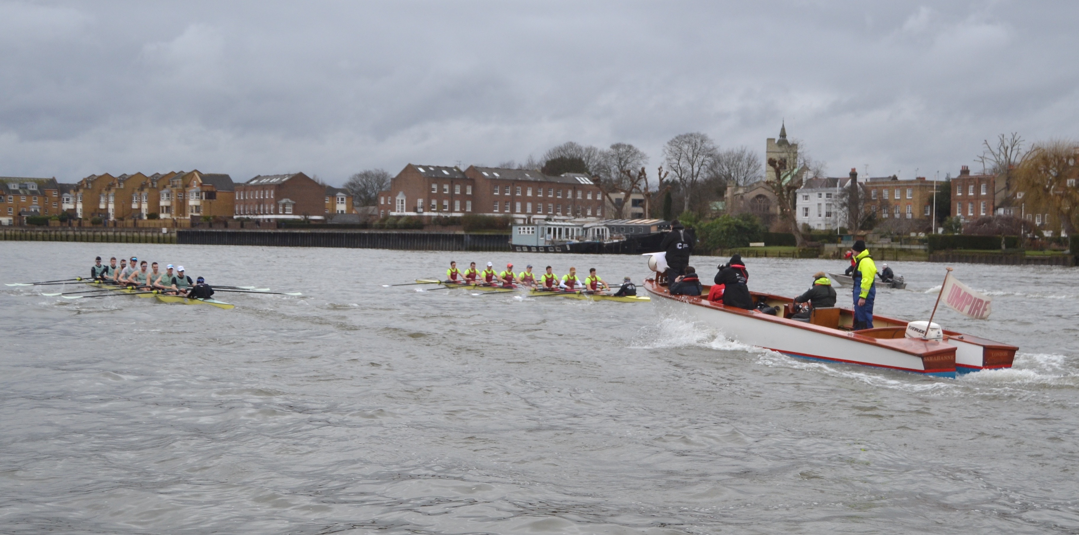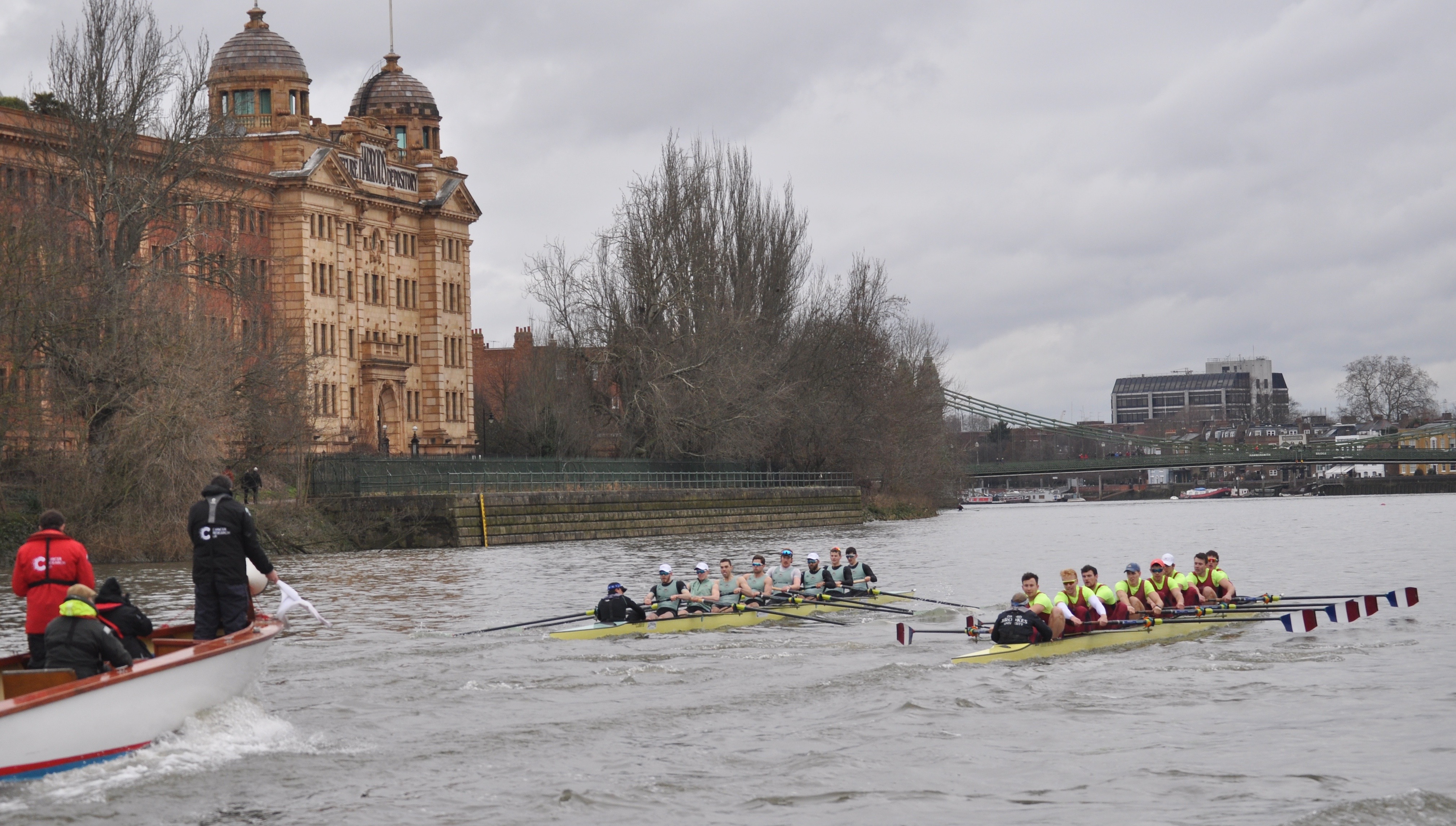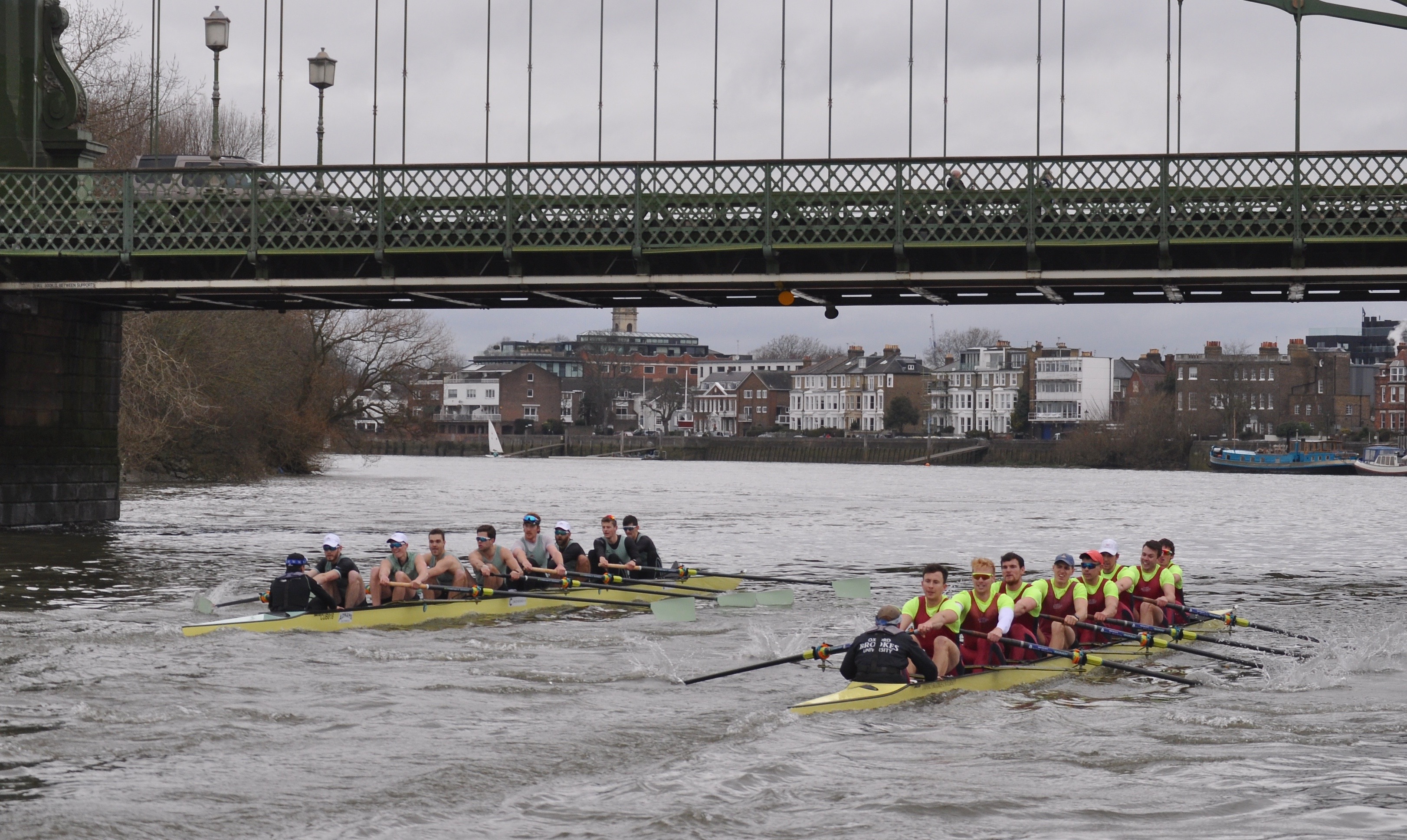 The River Thames between Putney and Mortlake is a busy place at present. Crews are practising for both the Women’s Head of the River Race on Saturday, 10 March, and for the (men’s) Head of the River Race held on the following day. Only 24 hours later, the Schools’ Head will take place. There is also a disproportionate amount of traffic produced by the upcoming Boat Race Day, even though it is an event involving only eight crews, about 972 boats less than the combined entries for the three Heads. With three weeks to go before the Oxbridge clash, the weekend of 3-4 March saw the final fixture races between some Oxford and Cambridge crews and boats from top student and open clubs.