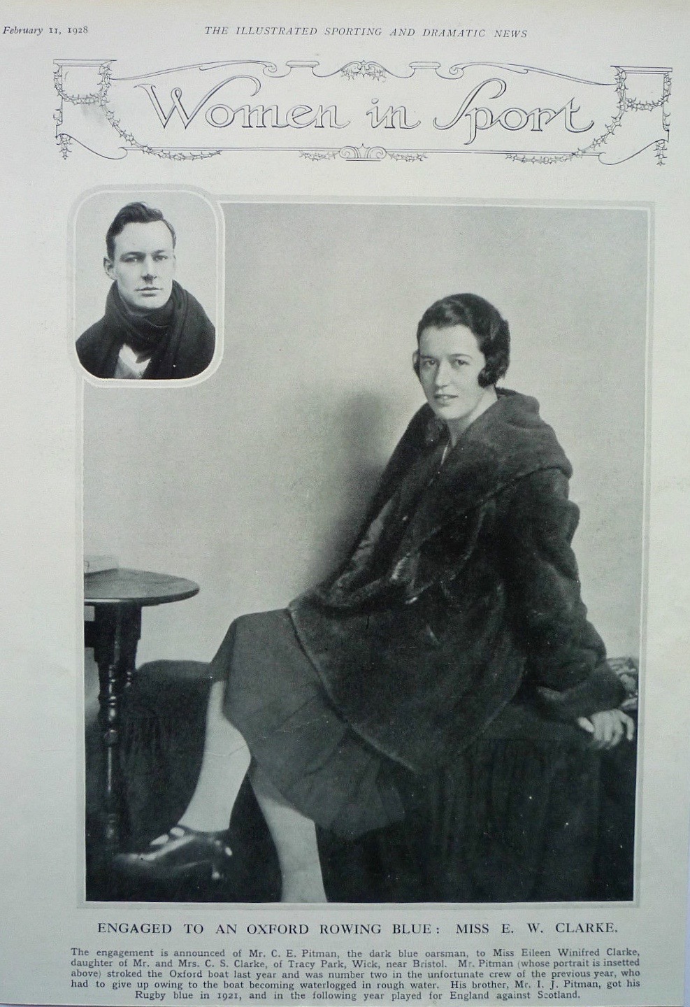 1928: This looks promising: “The Illustrated Sporting and Dramatic News” devote a whole page to ‘Women in Sport’. What is Miss EW Clarke’s sporting achievement…? She is engaged to be married to a rowing Blue. Well done Eileen!