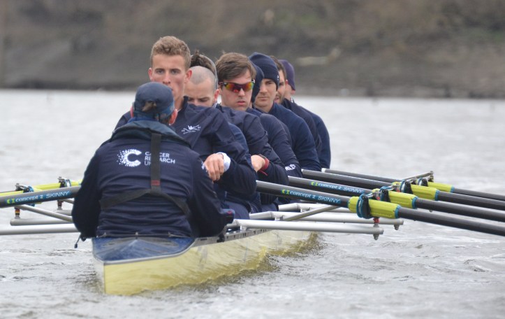 Tuesday sees the second day of Tideway Week, the time when the crews have finished the hard training and are mostly involved in eating, sleeping, light paddling and photo opportunities. The morning saw the turn of the Oxford Men’s Blue Boat to be stalked by the press launch.