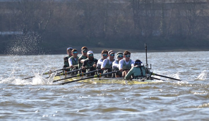 With the Boat Race only three days away, on Wednesday the Cambridge Men’s Blue Boat and Goldie, the men’s reserve crew, paddled over the course together, shadowed by both a press boat and a launch carrying Old Light Blues. The crews did some low rating pieces under the umpireship of supporting coach and Boat Race legend, Donald Legget, a man who has coached a CUBC crew every year since 1968.