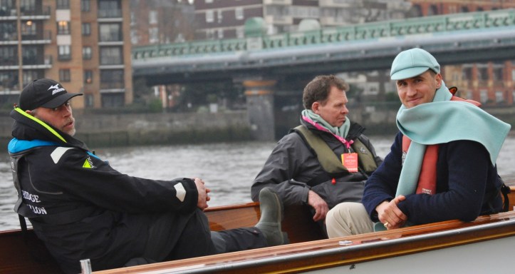 As the good ship Tramontana trod water in the gloom below Putney Bridge on Boat Race Day, I reflected that the two pairs of shoes I wouldn’t want to be wearing right then were those of Sean Bowden or Steve Trapmore.