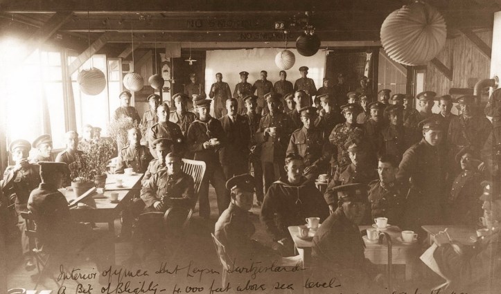 Initially, it was planned to build barracks for these men to live in. However, the war had virtually destroyed Switzerland’s tourism industry as it had been reliant on British and German guests. The result was that the Alpine resorts competed to house the internees in their empty hotels, the former PoWs’ respective governments paying the bills (though, if their wounds or illness permitted, interned other ranks were also expected to work).