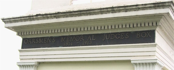 Hopefully, the 1914-1918 Oarsmen’s Memorial Judges’ Box just down from the boathouses near the finish line of the regatta will soon merit restoration as well.
