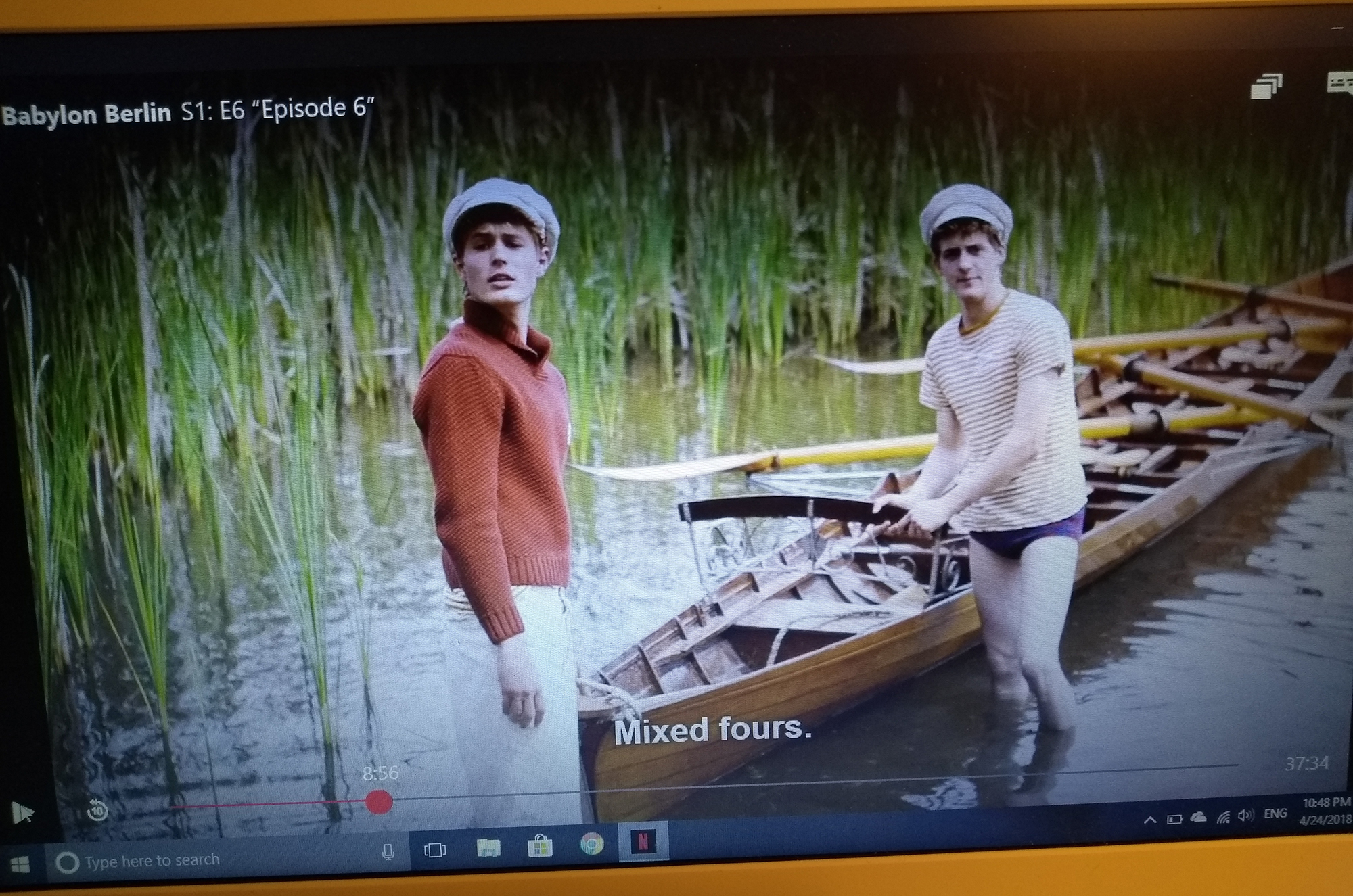 After this lengthy tale of Babylon Berlin, you readers might ask yourselves, why is this on HTBS? The answer is simple: Detective Stefan Jänicke is a member of Akademischer Ruderclub on Wannsee. There is an episode, which should interest what my dear colleague Tim Koch calls ‘HTBS Types’. In that episode, No. 6, Jänicke invites Lotte and her friend Greta to Akademischer Ruderclub. Being a rowing club in the 1920s, Lotte is made aware of the sharp distinction between the working class and the academic sphere.
