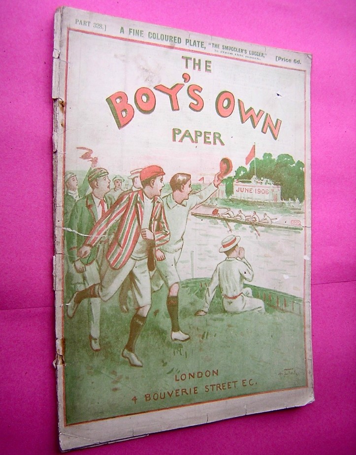 The most famous of the boys’ comics that had their origins in the late Victorian age was The Boy’s Own Paper (BOP), which was started in 1879 by the Religious Tract Society with the aim of instilling Christian morals during boys’ formative years. It hectored its readers on the importance of cleanliness and on the dangers of masturbation (‘self-abuse’), promoting sport as an antidote to evils such as onanism. Perhaps rowing would have been particularly encouraged as it was a pastime that kept both hands fully and properly occupied (though rowing historian, Tom Weil, has previously put forward a contrary theory).