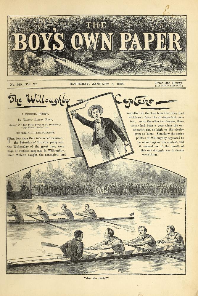 The most famous of the boys’ comics that had their origins in the late Victorian age was The Boy’s Own Paper (BOP), which was started in 1879 by the Religious Tract Society with the aim of instilling Christian morals during boys’ formative years. It hectored its readers on the importance of cleanliness and on the dangers of masturbation (‘self-abuse’), promoting sport as an antidote to evils such as onanism. Perhaps rowing would have been particularly encouraged as it was a pastime that kept both hands fully and properly occupied (though rowing historian, Tom Weil, has previously put forward a contrary theory).