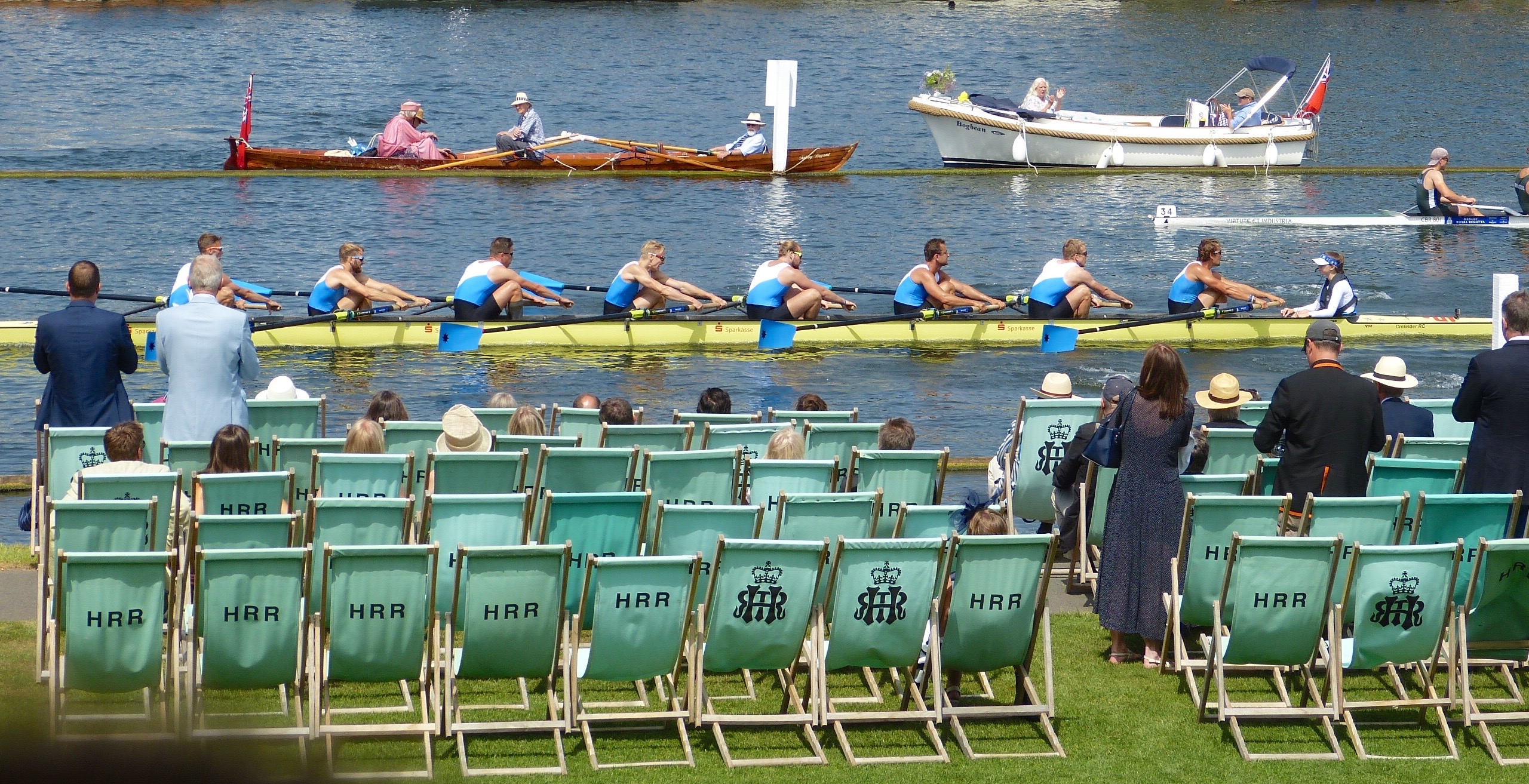 Lack of time and an attack of the Pimm’s prevents me from producing much original text on Henley’s opening day. Fortunately, the Regatta Press Office was not so afflicted, and I reproduce their excellent report below. Sir Matthew Pinsent was another clearly off the Pimm’s, and his Day 1 highlights programme is on YouTube. As I devoted the day to socialising, I did not take many pictures, but the best of what I did capture is reproduced below.