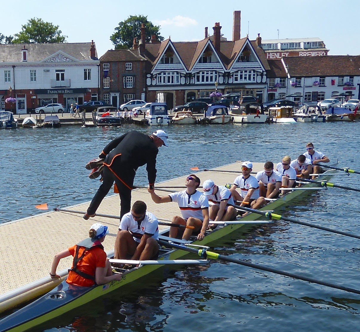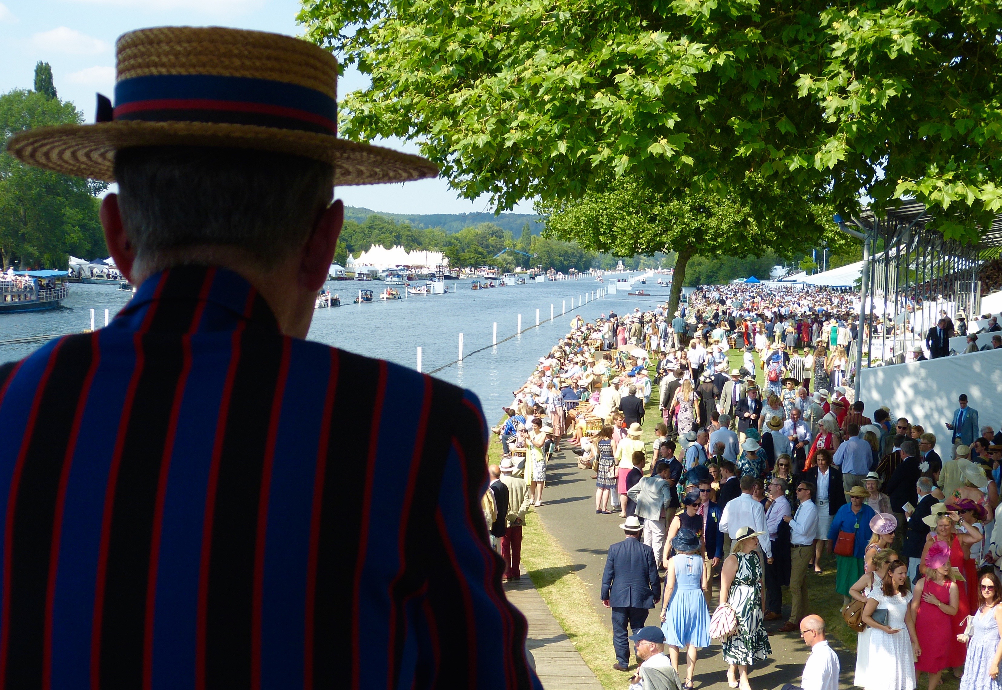 On the Regatta’s second day, possibly the biggest cheer from the crowd – sorry, from Members and their Guests – was not for any race won by three feet, or even by Radley supporting parents, it was for the tannoy announcement at 3.30 that gentlemen in the Stewards’ Enclosure could remove their jackets. I am glad to report that many of us did not make use of this privilege (the Stewards themselves always remain in full kit). If we did not enjoy discomfort, most of us would never have taken up rowing in the first place.