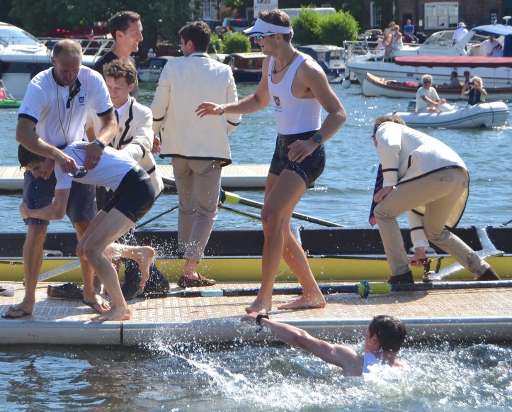 As many expected, Eton were completely outclassed (not a phrase that you hear very often). St Paul’s equaled the Barrier record (1.46), beat their own Fawley record (2.58) and then destroyed the event record by 11 seconds to win in a time of 6:06 (the Henley course record, set in the Grand half-an-hour earlier by members of the Australian National Squad, is 5.53). The boys’ time is surely destined to be Henley’s longest standing record. Rowing historians enjoy researching worthy events long past – but to witness history being made is a real privilege.