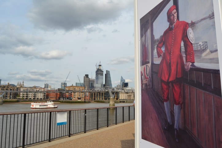 The exhibition can be viewed at three locations in London during September, and the first of these, outside the Tate Modern art gallery, already has ‘The World’s Oldest Boat Race’ in place.