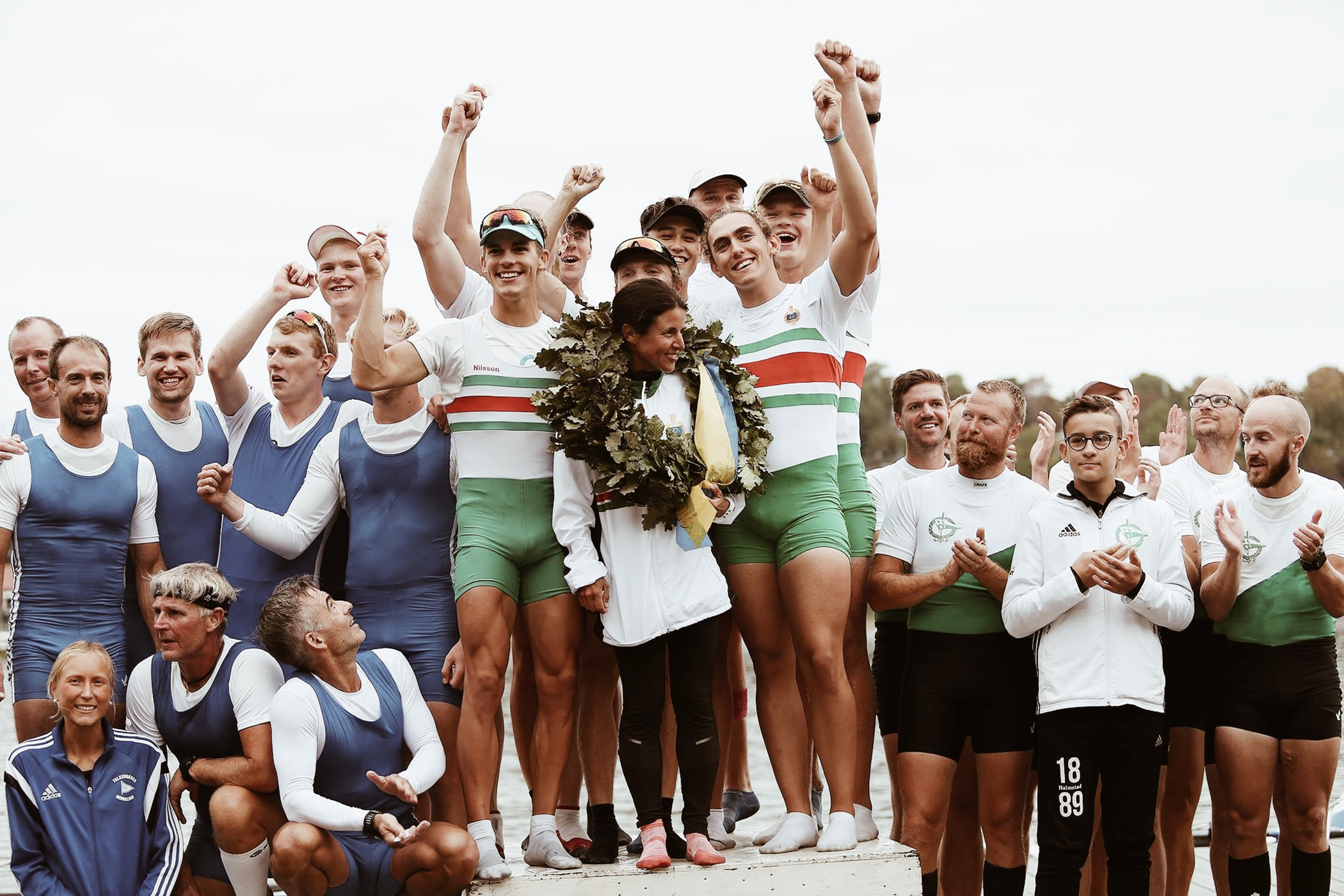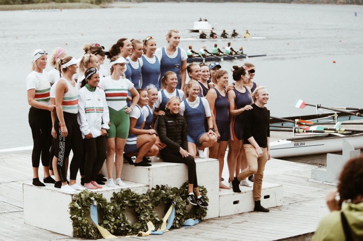 Falkenberg’s women’s eight on the top of the podium at the 2018 Swedish Championships.