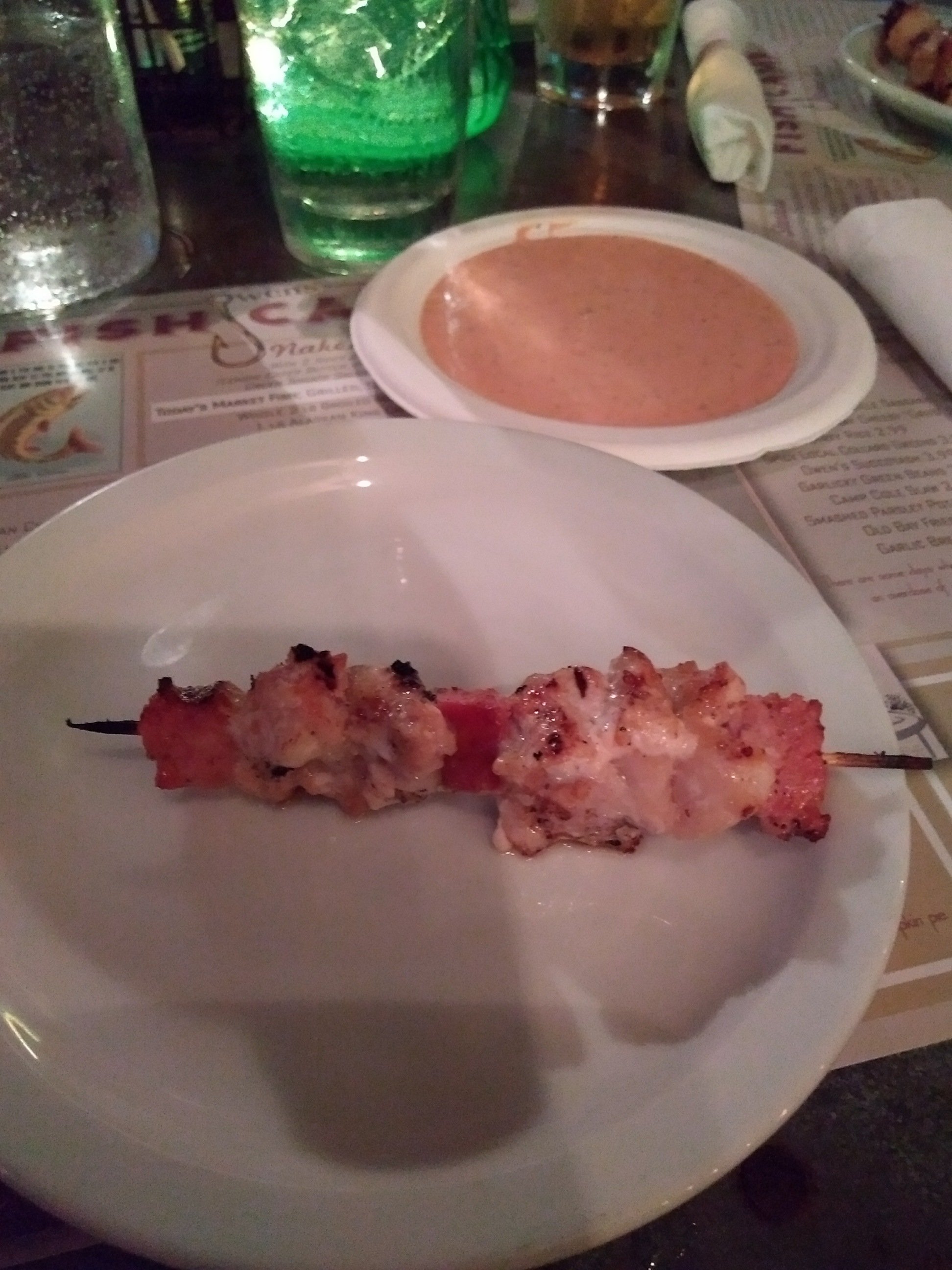 My Swedish friends, who are rowing at WRMR2018, and I went to a very nice fish restaurant called Owen’s Fish Camp. On the menu that evening they had a special dish that they seldom have on the menu, a $6 starter – ‘gator on a stick!