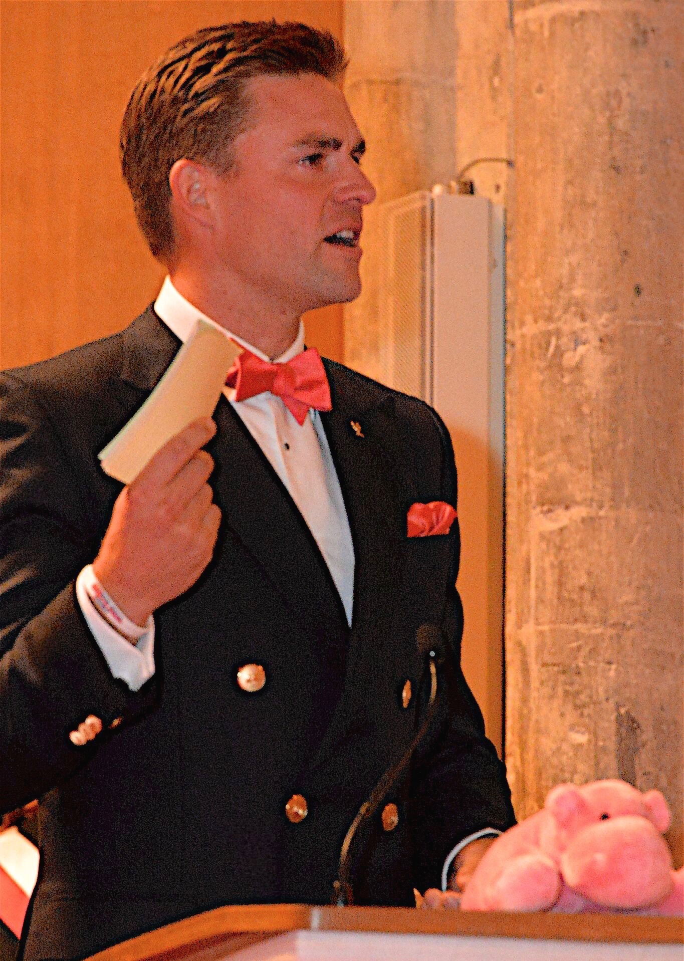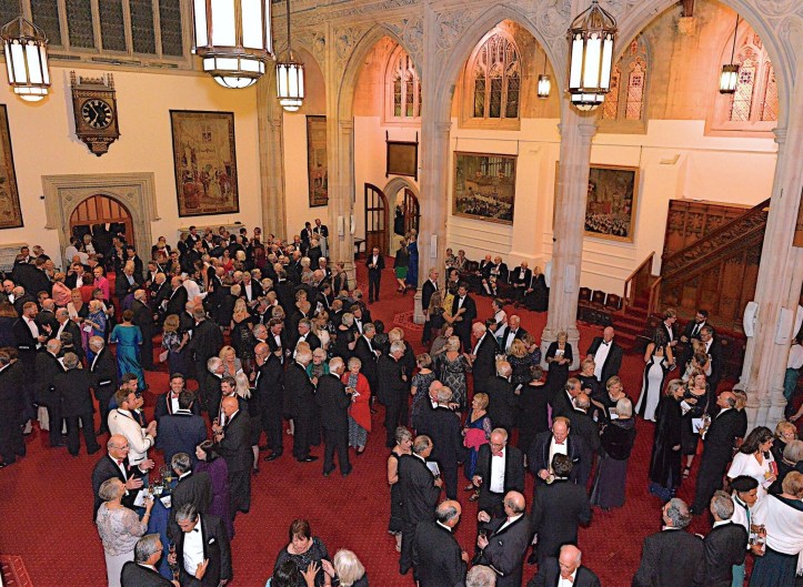 The evening’s proceedings began with a heroes’ welcome for a procession of Leander’s Olympic and Paralympic medal winners. Gazing up to the eves that were completed in 1440 – Guildhall trumps Leander by a few hundred sobering years – I spotted a pink scarf around the neck of a massive stone effigy of a former City luminary. Yes, remarked the retiring president later, they will wonder how we got it there, and Yes, we will be in trouble. In a characteristic stream of near-the-knuckle wit, Rass recalled for us that President Kennedy claimed to be a doughnut when visiting Berlin and that the French military wears brown trousers. He also warned the company against bad behaviour with the bread rolls. ‘The last time the hall was wrecked was on the night of 29-30 December 1940 when the Luftwaffe destroyed the roof.’