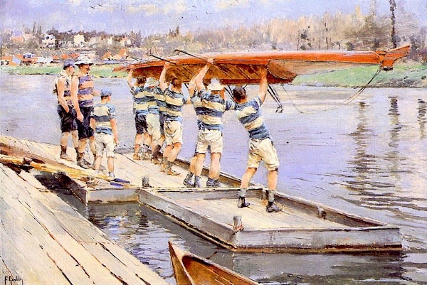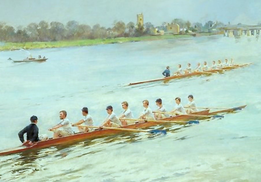 The quality of the copies of the pictures reproduced here varies, but even the low-resolution ones (as yet another catalogue puts it) capture the realism of the moment yet have romantic overtones portraying both the competitiveness and the fun of boat racing.