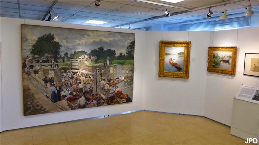I was particularly taken by the painting of Molesey Lock. It confirms the ‘picture in words’ drawn by Jerome K Jerome in Three Men in a Boat (who uses the old spelling, ‘Moulsey’):