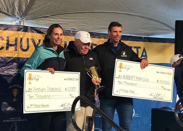 It was the two New Zealand scullers Robbie Manson and Hannah Osborne who won The Philadelphia Challenge Cup, or the Gold Cup for short, on the Schuylkill River in Philadelphia this past weekend. Manson and Osborne each received $10,000 in prize money. Not bad for having rowed 700 metres – that’s a little more than $14 per metre. (Or $75.75 per rowed second for Manson and $67.57 per rowed second for Osborne.)
