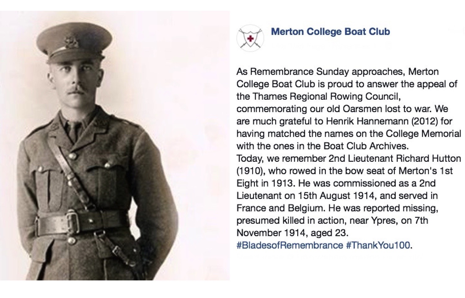 Oxford’s Merton College Boat Club’s Facebook page has tributes to five men of its members killed in 1914 and 1915.