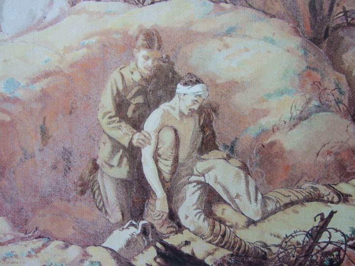 (On) the outbreak of war he obtained a commission for the (Royal Army Medical Corps). (In 1916) Green’s battalion… took part in the attack on… Gommecourt which formed the northernmost part of the offensive now known as the Battle of the Somme, which began on 1 July… Capt. Green was one of 19,240 British men who lost their lives on 1 July 1916, the worst losses in the history of the British Army.
