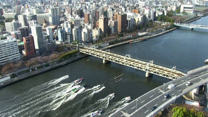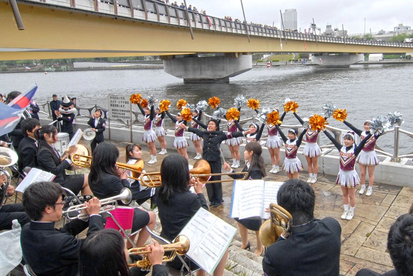 Most tourist boards are prone to hyperbole and Tokyo’s Chuo-ku (‘Central District’) Tourism Association seems to be no exception. Its blog for 16 April 2014 was enthusiastic about the upcoming ‘Japanese Boat Race’, the annual Sokei Regatta involving two local universities, Waseda and Keio, two of the most prestigious private universities in Japan. An imperfect translation tells us:
