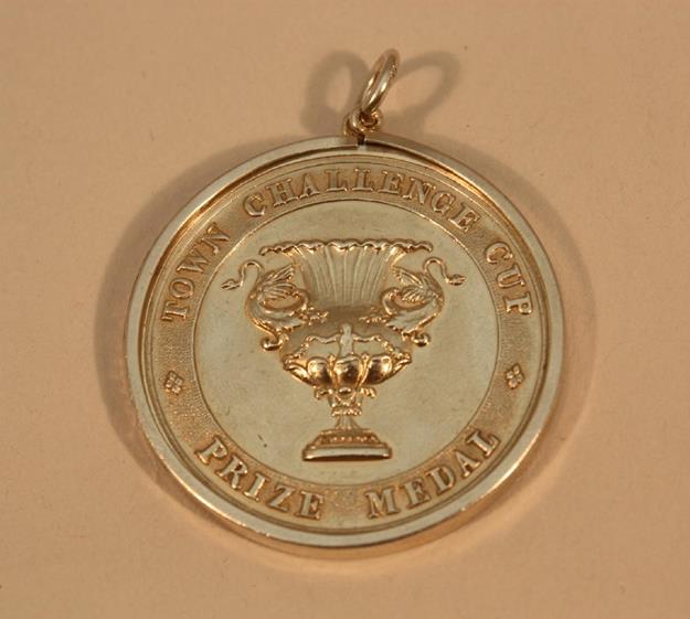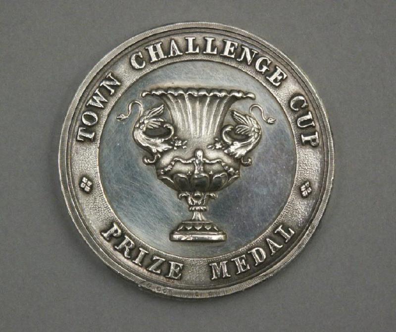 A. Town Cup Medal 1845 won by Henry Sergeant (bow) of The Henley Aquatic Club in a row over, the Dreadnought Cutter Club withdrawing in consequence of the melancholy and sudden death of Mr. W. Plumb who while sitting in the Steward’s Stand was attacked with apoplexy and died in the course of the night – his demise was the subject of deep regret and threw gloom over the proceedings of the day.