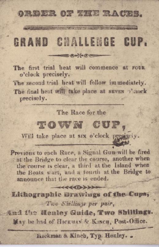 | Prints of Henley Regatta Town Cup and the Order of the Races from 1839. Both the work of Hickman & Kinch, Henley. Pictures: River and Rowing Museum Collection. | |