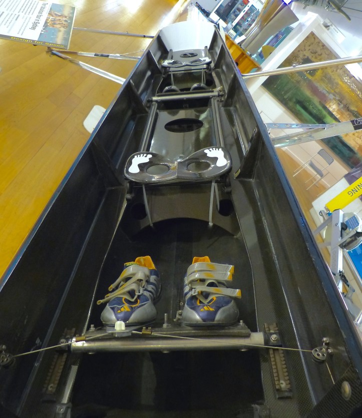 The fifth four is the iconic craft by Aylings that won the Sydney 2000 Olympics with the aid of James Cracknell, Steve Redgrave, Tim Foster and Matt Pinsent. It is an Ayling state-of-the-art coxless four with refinements to fit Pinsent’s size-14 feet into his foot-stretcher, and it delivered Redgrave’s fifth Olympic gold and Pinsent’s third. What more is there to say?