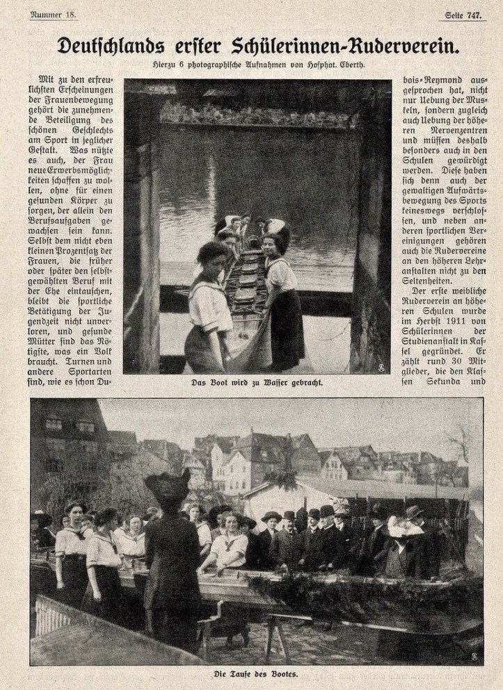 1911/1913: Casseler Frauen-Ruderverein (CFRV): Founded by female teachers and high school students in Kassel, Hesse, who initially rowed ‘in long black wool stockings, bloomers and sailor blouses’.