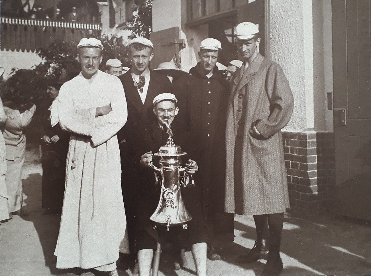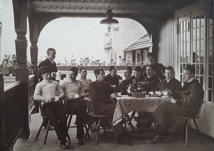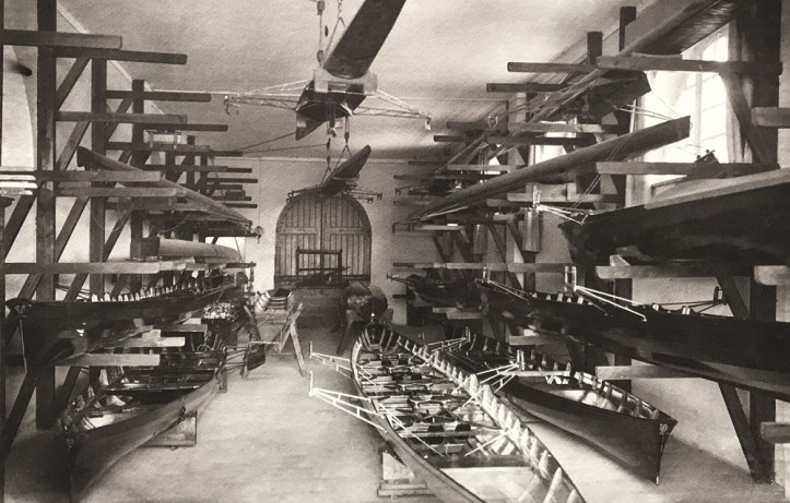 The peculiar caps worn in the picture above look like fezzes, but they have no specific tradition in German academic rowing. I believe it was simply a “fun picture”, they were very popular at that time. For the 1936 Olympic Games, when the regatta was held just in front of the boathouse of ARV, the veranda was closed with windows to provide enough inside space for all members and their guests in case of typical German weather (and according to the book The Boys in the Boat, it was actually a very chilly summer that year)!