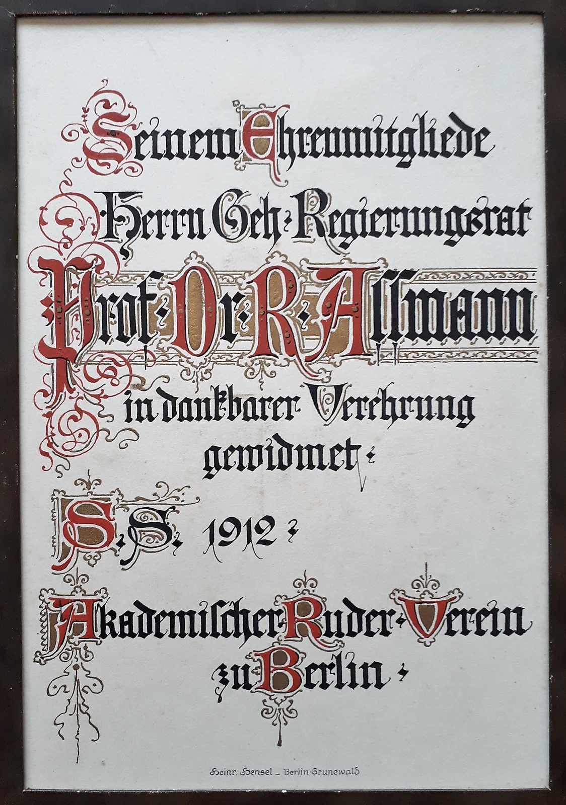 Dedicating such albums was a popular, yet very expensive tradition around the turn of the last century in richer clubs and fraternities in Germany, and these albums are extremely rare to find nowadays. As my club, the Akademische Ruderbindung Westfalen in Münster, considers itself the Lord Privy Seal of the German Academic Rowing Clubs, it was immediately clear that we had to purchase the album in spite of its proud price of €1,600 (£1,390/$1,800). After a quick call for donations, I had collected the respective funds and some days later I was holding the huge album (which is almost two feet tall!) in my hands.