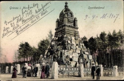 At the end of the boathouse row in Grünau, at the 1000-metre-marker of the regatta course, the so-called water sports memorial was built in 1896. An appeal to contribute stones with respective club names carved-in was sent to all German water sports clubs and more than 300 clubs send their stones to Berlin, which were then used to build the memorial. It was torn down in 1973 in the preparations for the World Youth Games in 1973, as a relic from Prussian times did not fit the ideology of East Germany’s communist rulers. After the Berlin Wall came down, several stones were found and were brought to the water sports museum in Grünau.