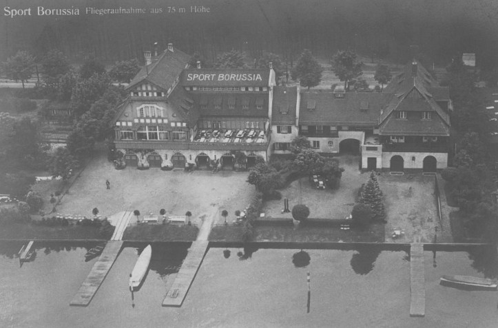 During a visit at the regatta in Grünau, Kaiser Wilhelm II stated that boathouse shall stand next to boathouse on the shore of the river Dahme along the regatta course. Hence he dedicated the land to be exclusively used by water sports clubs and his vision soon became true – in 1906, Sport Borussia moved into their new home, which was even bigger than the ARV house, and about half a dozen other boathouses followed in the next years. Sport Borussia won the German Championships in the eights in 1921 and 1924 and in the coxless fours in 1923 and 1925 as well as multiple other medals in these years and was one of the dominant clubs in German rowing in the 1920s. After the war, Sport Borussia merged with Berliner Ruderverein 1878, which is located in West Berlin.