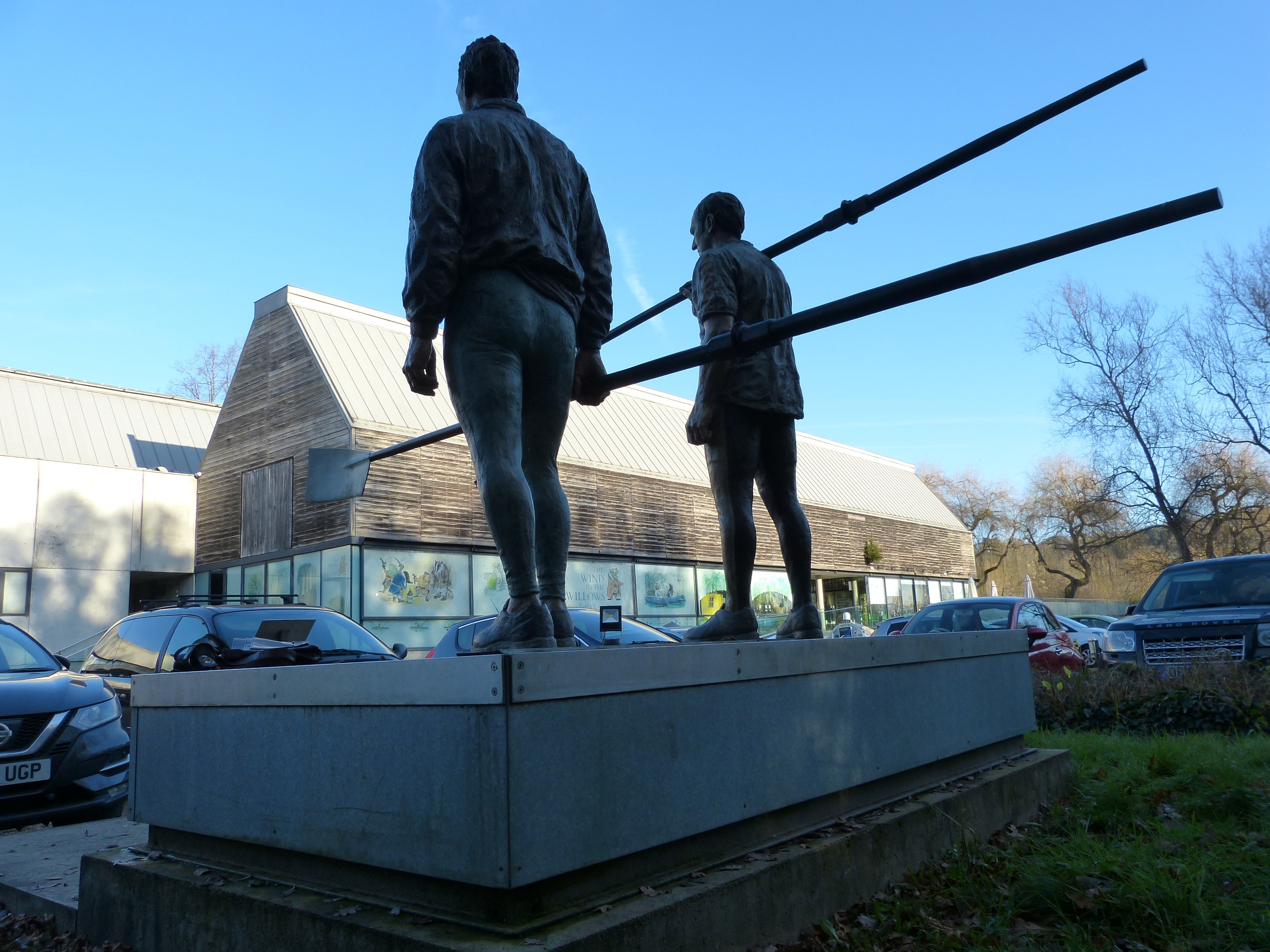 An iconic feature of the museum is Sean Henry’s painted bronzes of Redgrave and Pinsent who face you as you enter the car park. The sculptor said he wanted to capture the years of training that lay behind the glory of their achievements, as well as the glory itself. Thus Henry has them standing on the dock in timeless, crumpled training garb, holding an oar apiece and facing the river where they accomplished their work.