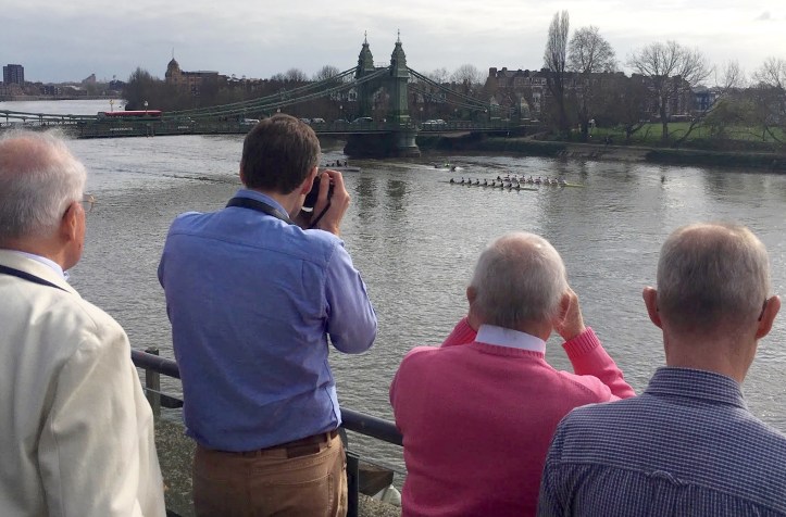 ‘Lunch is for wimps’ was one of the mantras of Gordon Gekko, the ultimate yuppie portrayed in the 1987 film, Wall Street. However, if Mr Gekko had attended the Hear The Boat Sing 10th Anniversary Lunch last Saturday, he would surely have changed his mind. An eclectic and erudite gathering of HTBS Types enjoyed delicious food, quaffable wines and good company, interrupted only by the opportunity to observe some high-class racing on the Thames at Hammersmith as four of the Boat Race fixtures plus the Oxford – Cambridge Men’s Lightweights fought it out along the Championship Course. The only sign of wimpery was once when a third glass of port was (initially) refused.