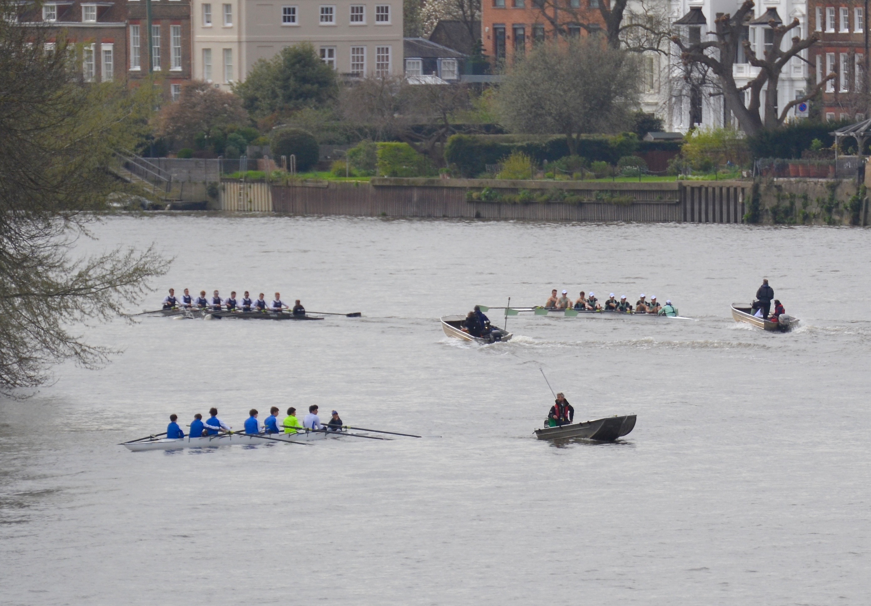 In the early afternoon, there were four ‘fixture’ races when Oxford’s Boat Race crews (men’s and women’s Blue Boats and reserve crews) took on crews from Leander, Molesey and Tideway Scullers (not the University of London Boat Club as advertised) over the Putney to Mortlake course. The Oxford men’s Blue Boat beat Leander by a canvas, while the top Oxford Women beat Molesey over two pieces, the first by 1 1/2 lengths and the second by 1/4 length. Previously and subsequently, both the Oxford and the Cambridge men had/have been beaten by Oxford Brookes University. On 17 March, Brookes finished ‘well ahead’ of Oxford in two shorter races, and on 24 March, Brookes beat Cambridge by 2/3 length and ‘just under’ 1 length in another two race clash.