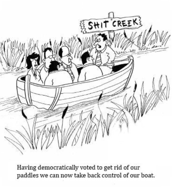 The final three cartoons have nothing to do with rowing, but I rather like them. The first, suggesting that Brexit is a disaster, conforms to the liberal metropolitan bias that I secretly try to indoctrinate all HTBS readers with. Witty, pro-Brexit cartoons are difficult to find but, in the interest of balance, I also include the second, something that may be suggesting that Brexit is a good thing – or it is just having a bit of fun? I suppose it depends on your view of the 45th President. The third and last cartoon references one of the few feelings relating to Brexit that everyone will agree on: please make the talking stop!