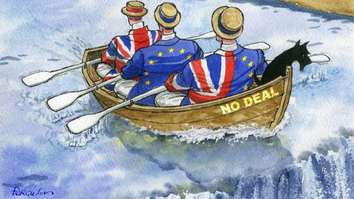 Peter Brookes in “The Times”, the day after the Brexit vote.‘Brexit – rowing away’ by Arend van Dam, politicalcartoons.com.The result of a ‘No Deal’ Brexit by Ferguson in the “Financial Times”.Axel Scheffler, a German who is the illustrator of the popular children’s book, “The Gruffalo”, has lived in Britain for 36 years. See more here.This popular social media meme is a manipulation of the real cover of a Tintin book.An illustration for an article on chinadaily.com.cn titled ‘May’s tough search for trading partners’. Perhaps Mrs May should be sculling away from and not towards the European dock. Of course, she could be ‘backing down’ – but is she capable of doing this?‘The Brexit Lady Theresa May’ by Marian Kamensky, from @MarianKamensky1By Rod Emmerson in “The New Zealand Herald”.Via Pinterest.