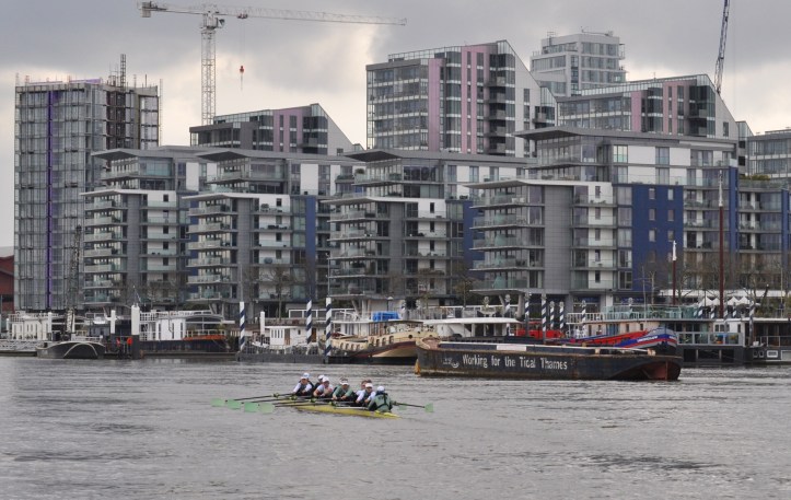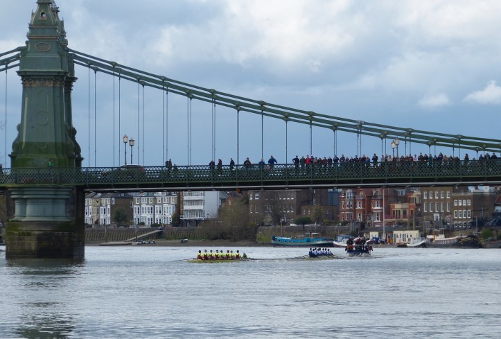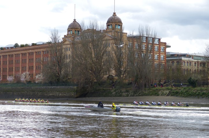 While I may have been following in few light and dark blue wakes, the good people from theboatrace.org have had no such problems and their excellent race reports are here. I have taken the liberty of editing and consolidating these, interspersing my plagiarism with those pictures that I did manage to take, either from Hammersmith Bridge or from the riverbank. The pictures may – or may not – go with the reports around them.