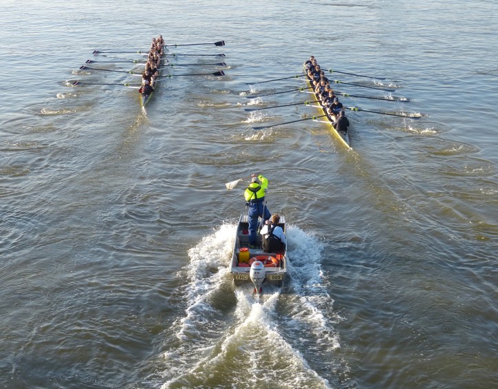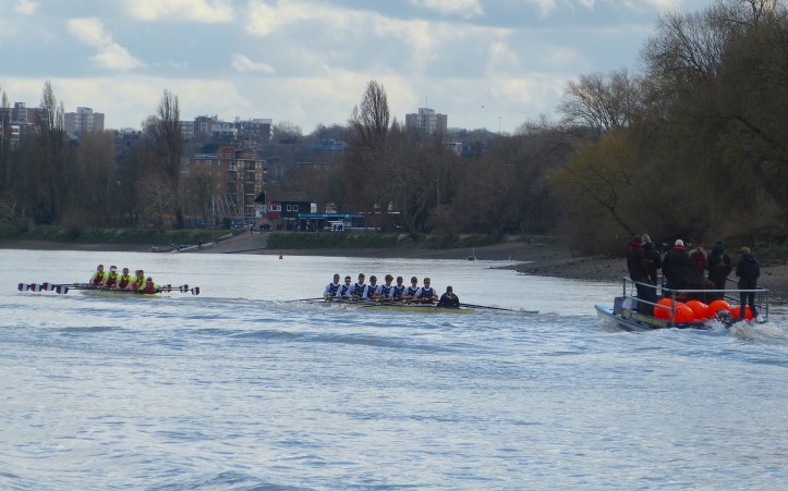 Regular readers (and I hope that I am correct in using the plural) may have noticed that my usual reports on the run-up to Boat Race Day have been as faint as the puddles of a novice eight. Normally, I cover most of the Boat Race Fixtures, when, in the final month, the crews get valuable race practice by competing against boats from top clubs over all or part of the course. Also, in the final days, ‘Tideway Week’, I am usually in the press launch observing the crews doing the final fairly gentle outings as they taper their exercise in preparation for their big race. This year, however, I have been less able to do this, partly due to work commitments, partly because of a lack of space in the small press launch that Health and Safety now force us to use. Further, the 2019 men’s race has a ‘human interest’ angle that has caught the attention of the media; a middle-aged man is showing that grey is the new Light Blue. This has increased the number of photographers, in particular, wanting launch places, the press being delighted that this year’s Boat Race is not just about boring old rowing.