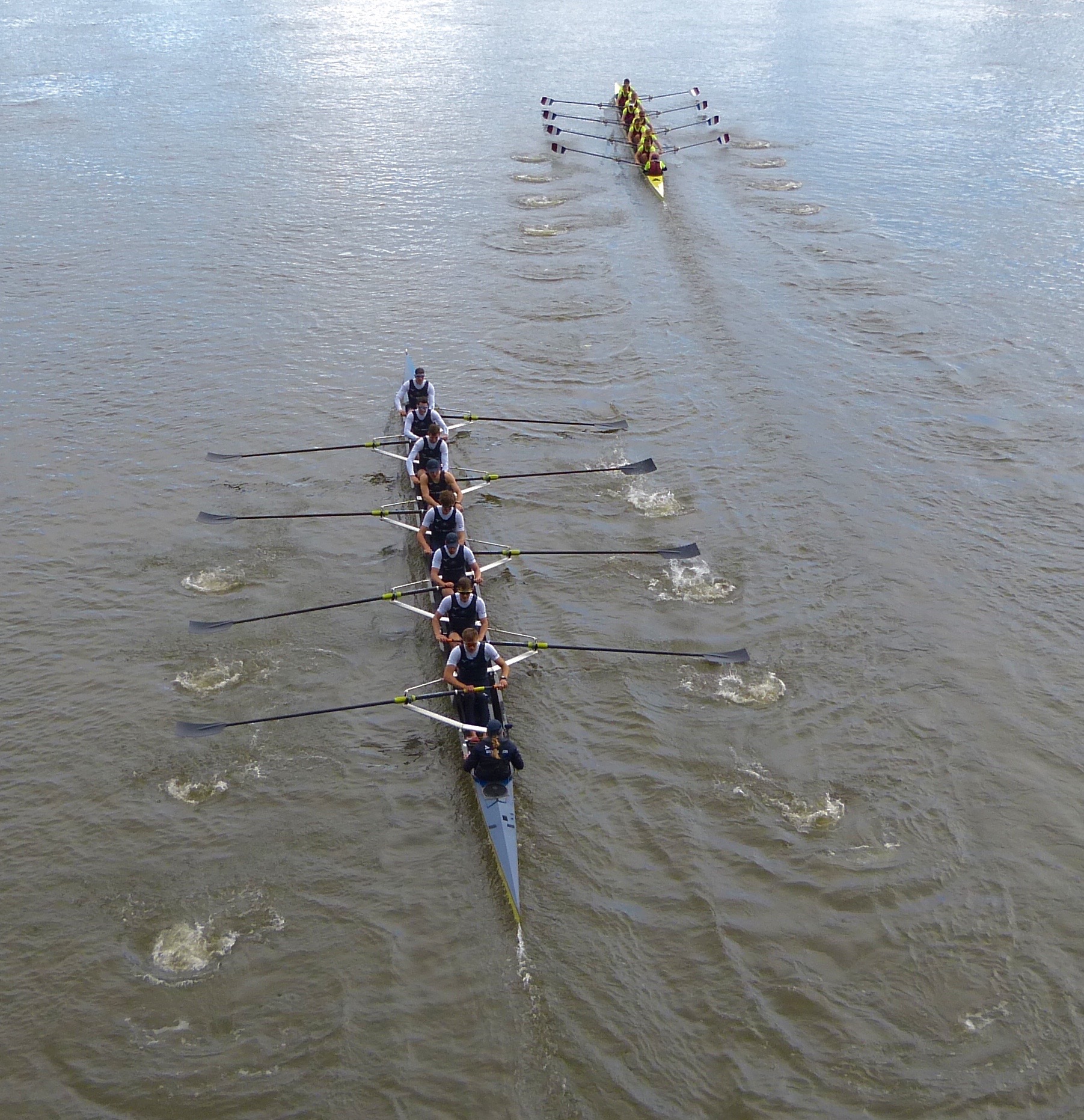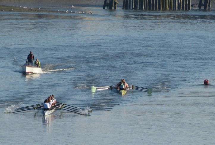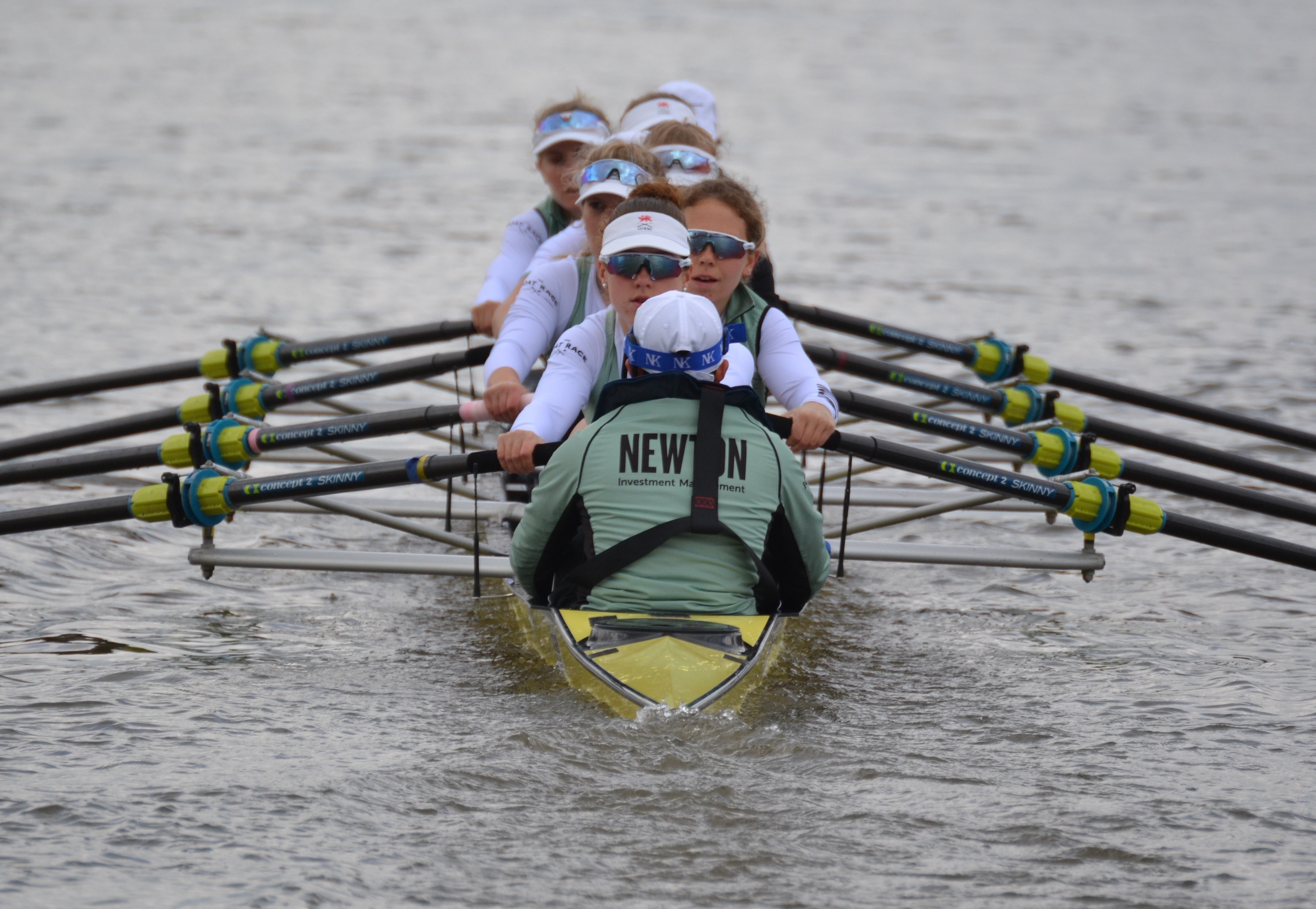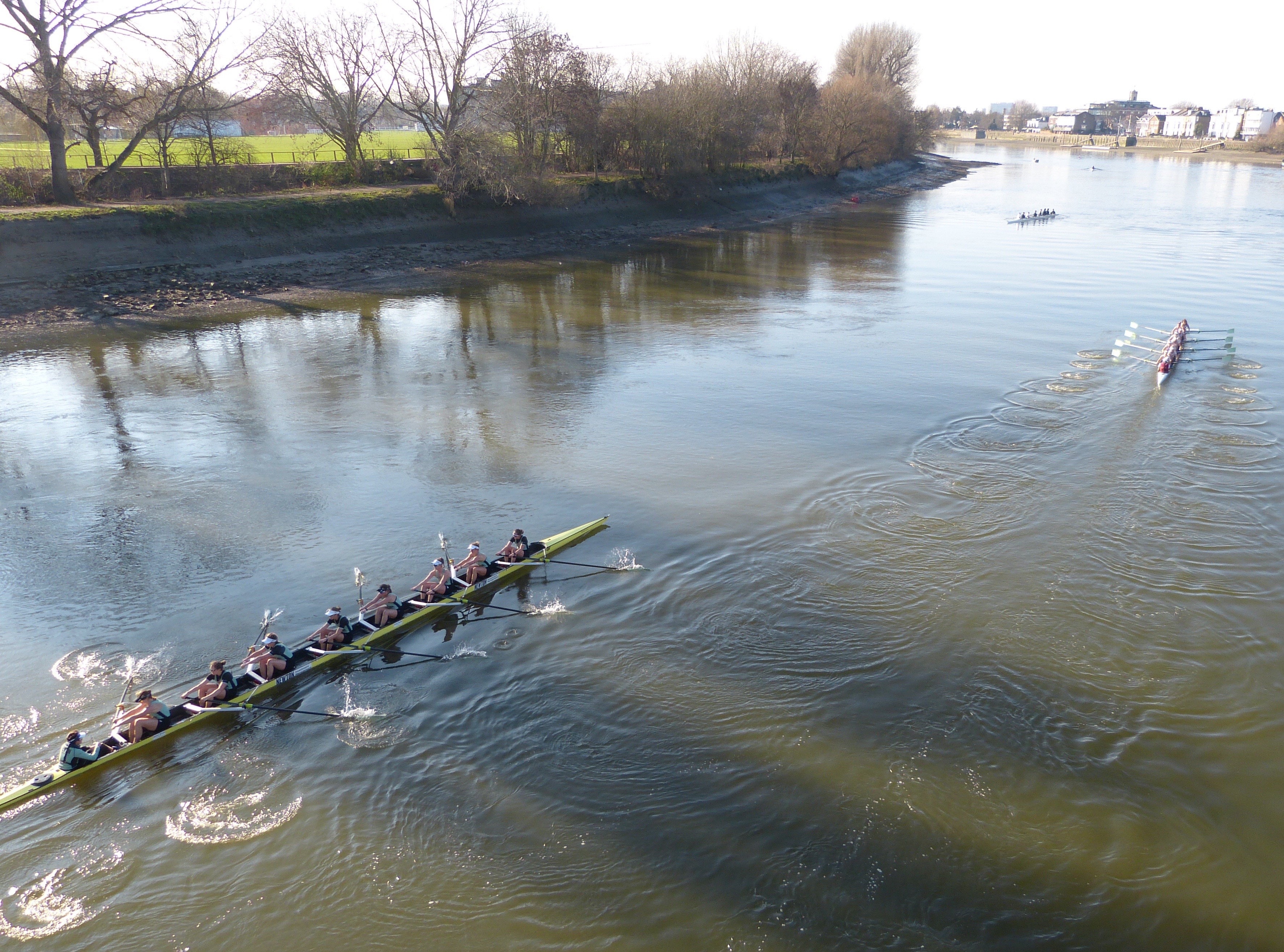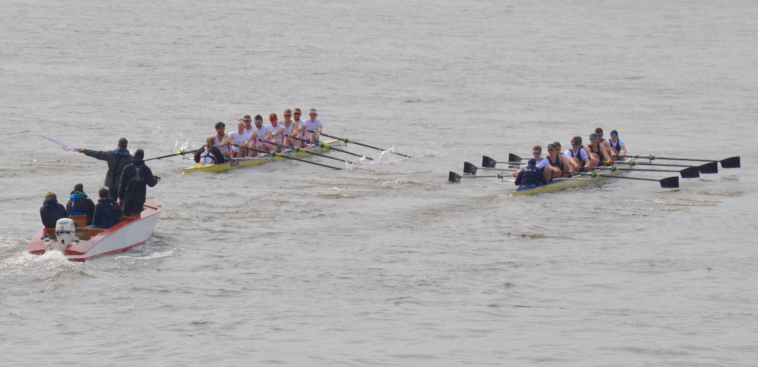 The weather worsened throughout the fixture and it was a good chance to see how Cambridge would perform in conditions which contrasted to the near-perfect weather that they had for their last fixture against Nereus. The fixture was split into three pieces; the first piece was from the start to the Mile Post. Cambridge held a small, but noticeable lead for most of the first piece, increasing the distance to half a length approaching the finish at the Mile Post. In the second race, the conditions quickly worsened which allowed Cambridge to pull clear from Oxford Brookes who began to struggle in the wind. Cambridge finished with a strong lead over Brookes. Similarly, in the final piece, from the Bandstand to the finish, Cambridge continued to look strong and remained composed whereas Brookes found the conditions difficult. Cambridge won this one by three and a half lengths.