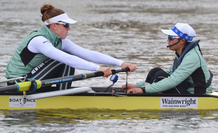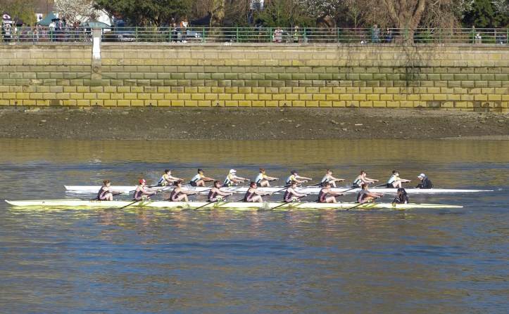 The photographs below are from the only Tideway Week outing that I did manage to follow, the Cambridge Women rowing on 3 April in which the Blue Boat paddled, did starts, and raced their reserves, Blondie.