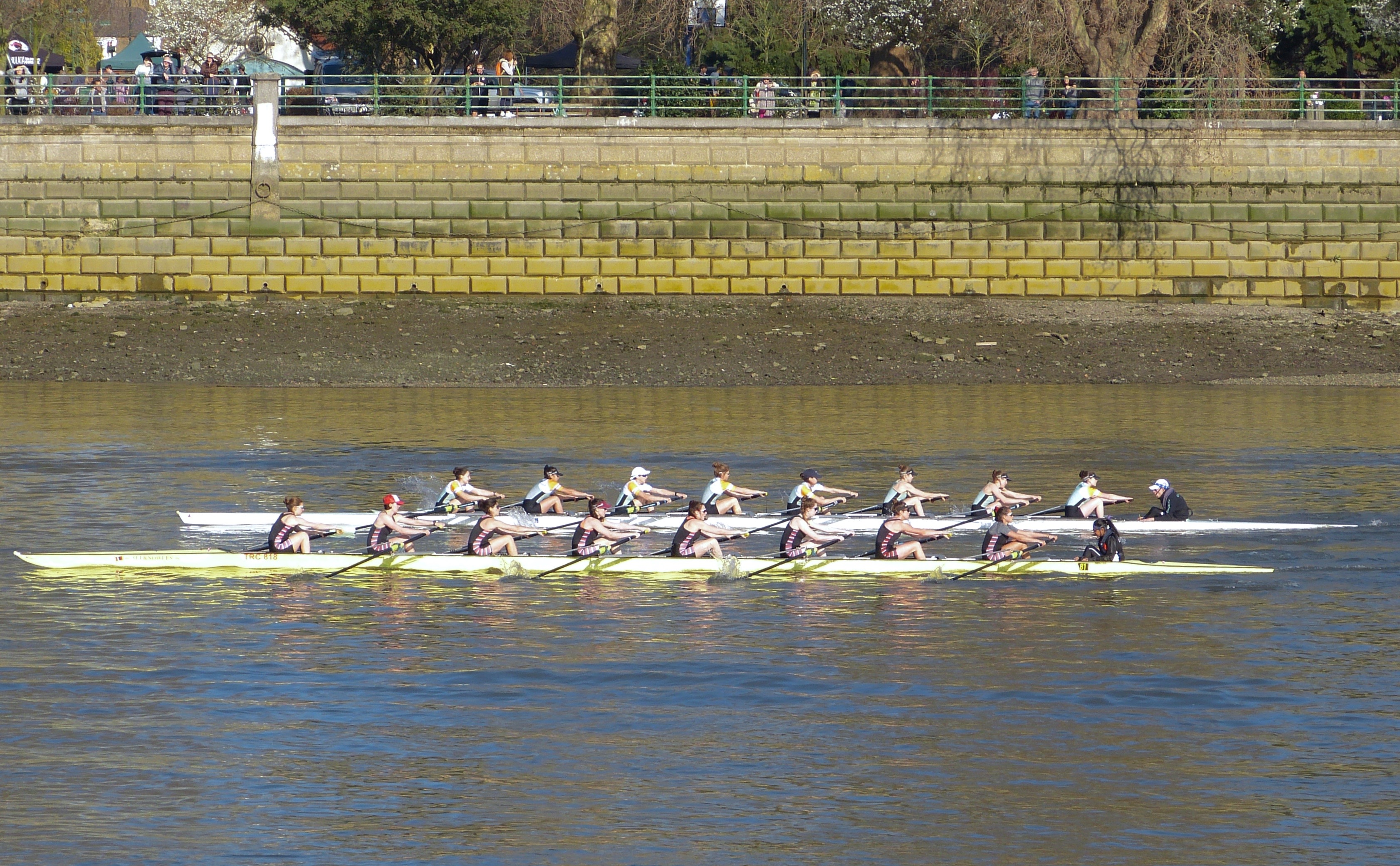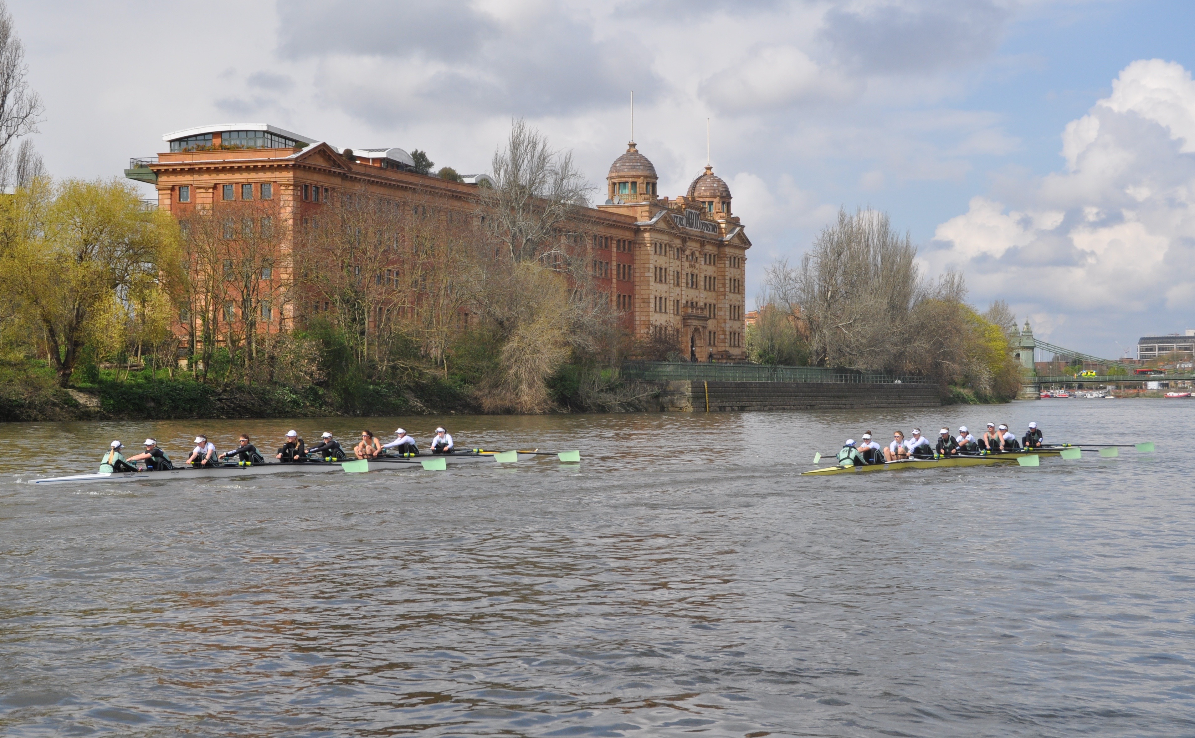 Two races were held between Chiswick Steps and Beverly Brook. From the start of the first piece, Brookes began to inch away and by the time the crews reached Hammersmith Bridge, Brookes had opened up clear water. At the finish, Brookes was well ahead of Oxford. The Dark Blues started stronger in the second piece, but Brookes still gained a three-quarters of a length lead by Hammersmith Bridge, and at Harrods, there was clear water between them. Towards the finish, Brookes increased their lead. Oxford Brookes is consistently ranked as the top rowing university in Europe, the question now was, how would Cambridge do against them when they met later in the month?